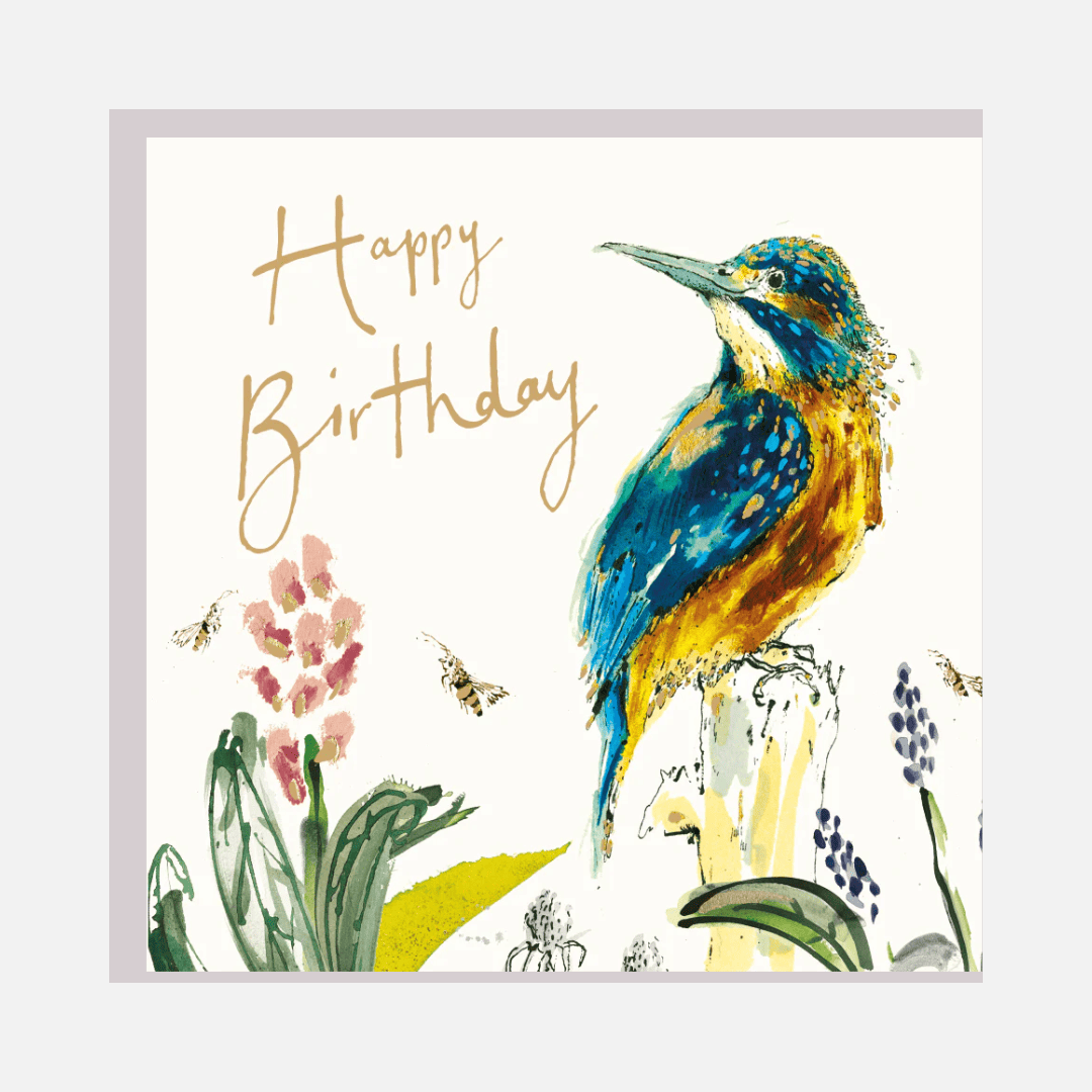 Send your best wishes in style with the ‘Happy Birthday’ card, beautifully illustrated by Anna Wright. The gold foil embossed design features a vibrant Kingfisher, adding a touch of elegance and nature to your birthday greetings.