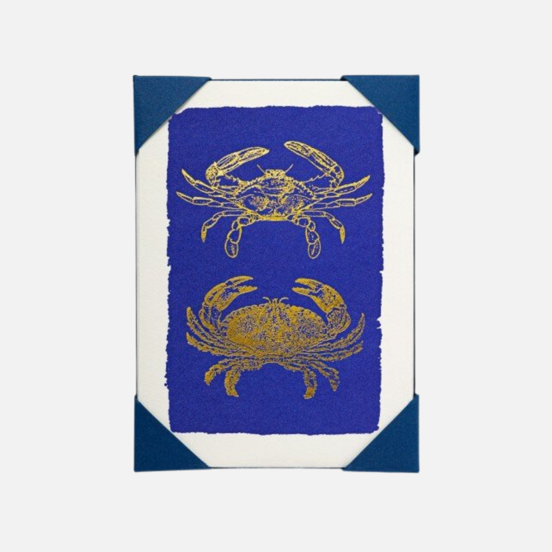 Catching crabs, a favourite past time for centuries on these isles - unless of course you're a rower. Tough-shelled and ready to pince, these curious crustaceans have never looked more elegant as they do depicted in gold against deep-sea blue by Archivist Gallery.