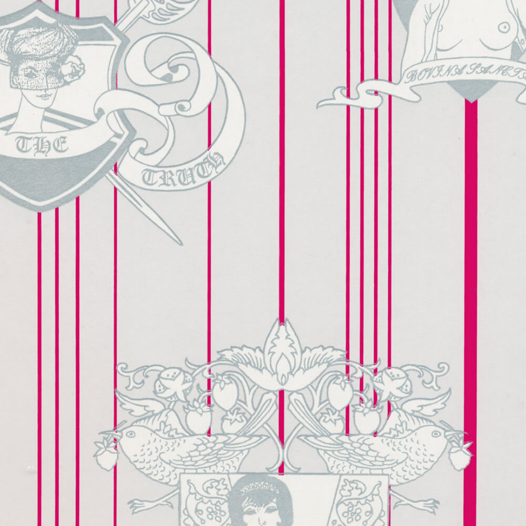 The fabulous Carpe Noctem design from Barneby Gates features soft metallic crests on a bold pinstripe base – a contemporary take on a classic British heraldry design. This wallpaper is available in 2 gorgeous colourways.