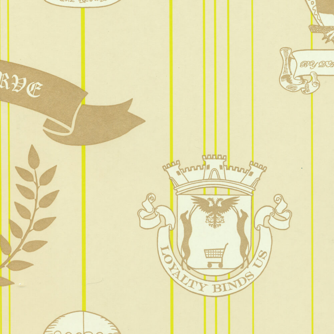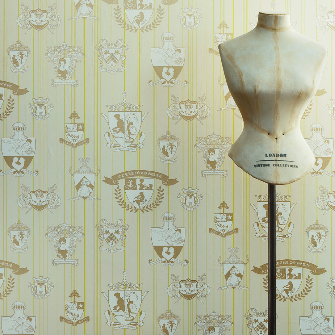 The fabulous Carpe Noctem design from Barneby Gates features soft metallic crests on a bold pinstripe base – a contemporary take on a classic British heraldry design. This wallpaper is available in 2 gorgeous colourways.
