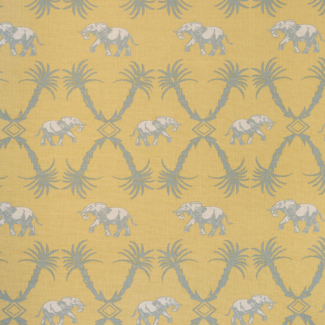 The stunning Elephant Palm design from Barneby Gates features a colonial-inspired trellis made of palm trees and elephants. This print is available in soft ochre and denim blue or gunmetal grey with metallic gold to compliment their Elephant Palm wallpapers.