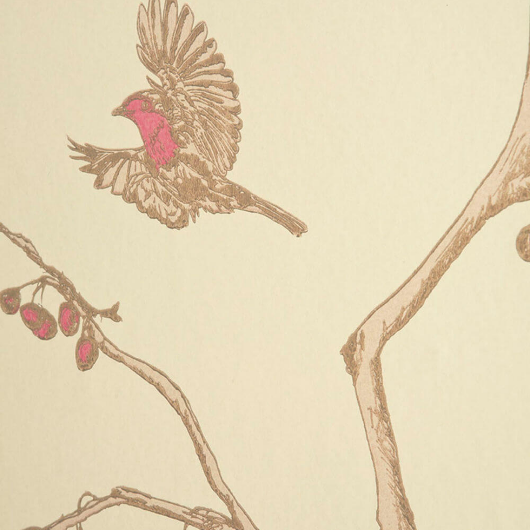 The stunning English Robin design from Barneby Gates is their take on the quintessentially English bird is prettily pink breasted and flitting between softly metallicised branches. This wallpaper is available in 2 gorgeous colourways.