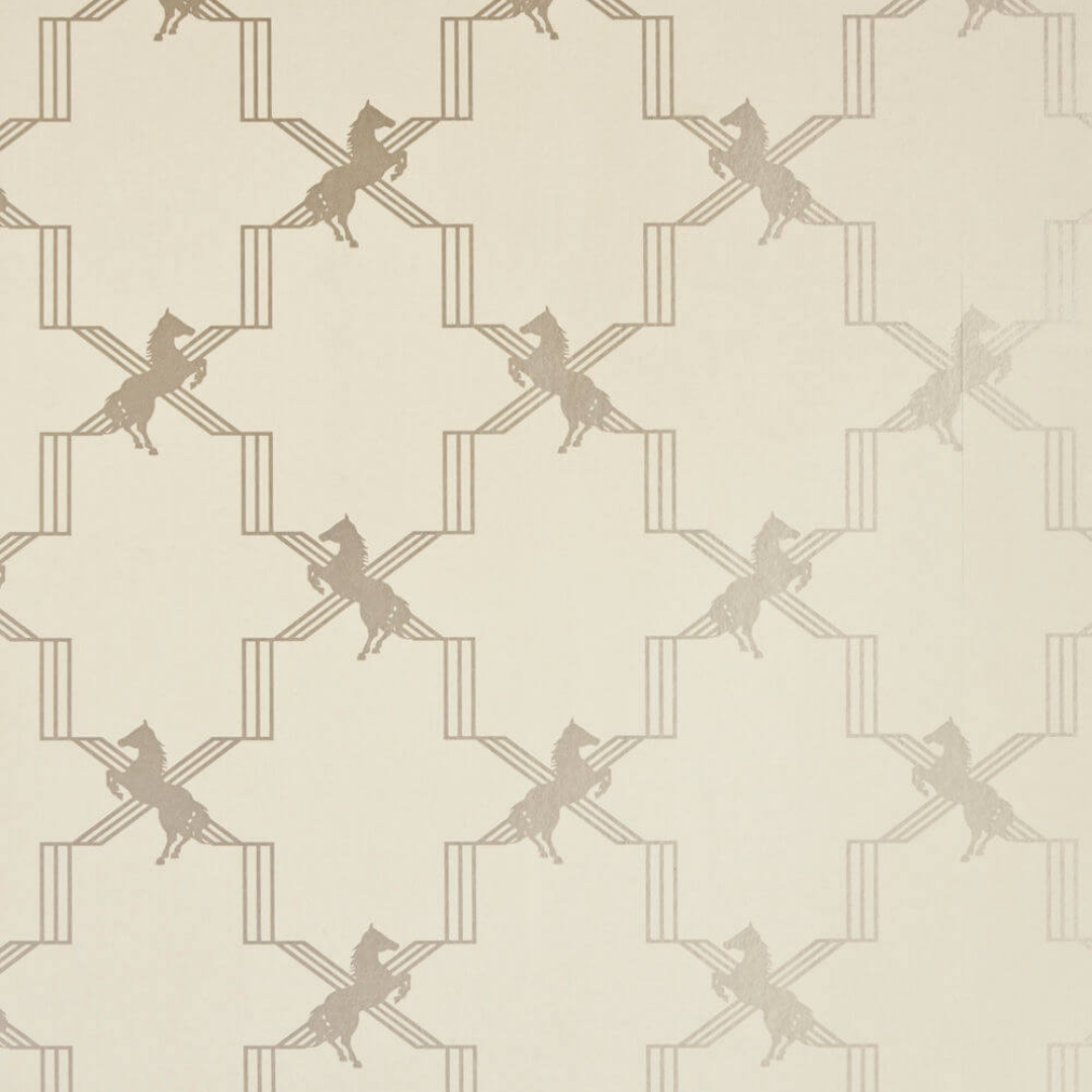 The stunning Horse Trellis design from Barneby Gates was one of their first geometric prints, it features rearing horses linked by triple bars. This wallpaper is available in 2 gorgeous colourways.