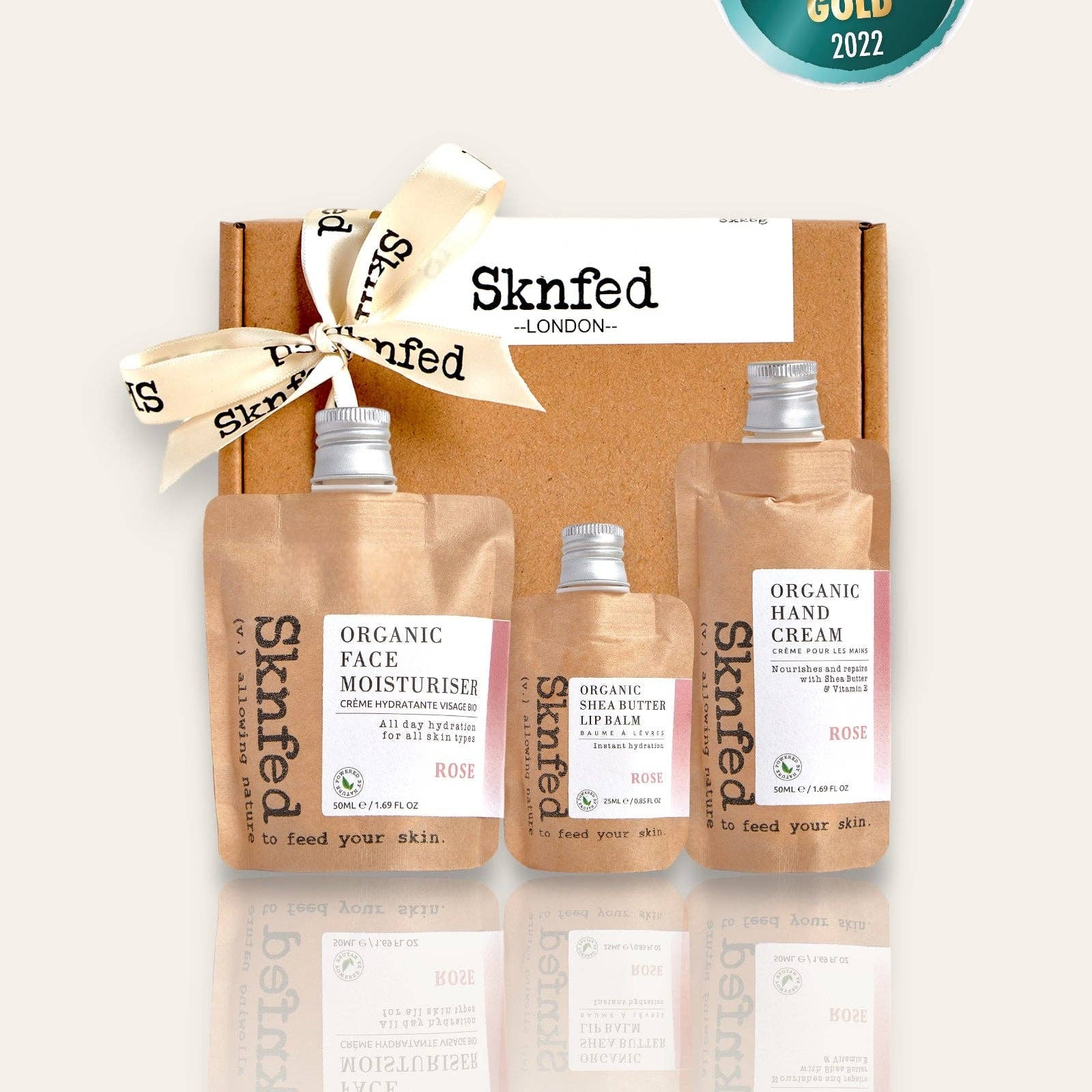 An award-winning trio of indulgence, the Rose Trio Gift Set by Sknfed brings together three everyday skincare essentials, each delicately scented with the natural aroma of rose. Organic, vegan, and beautifully boxed—this is self-care at its finest.