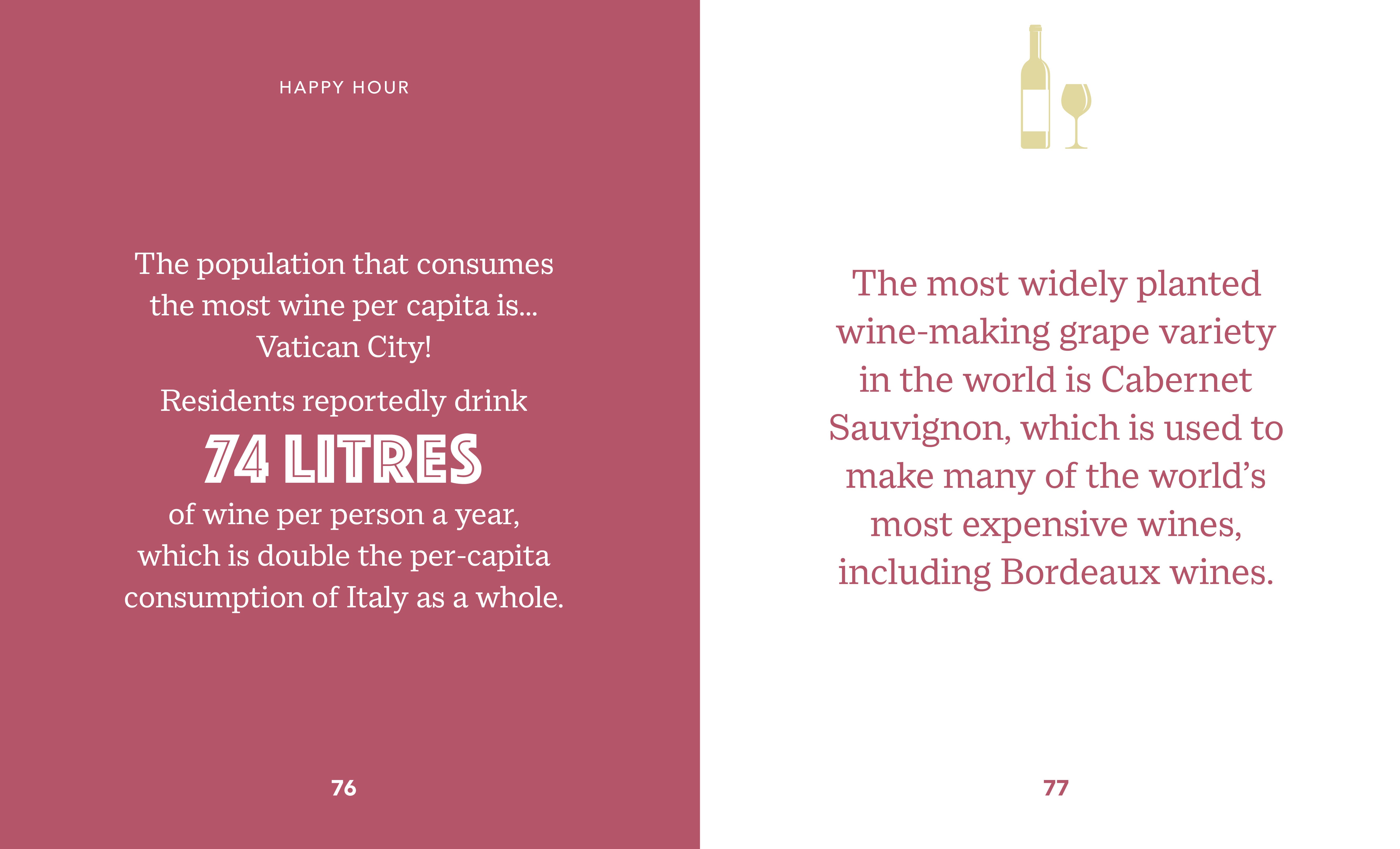 This little book gets to the heart of our love affair with wine. It explores wine’s evolution through the centuries, delves into techniques of production and celebrates drinking (and appreciating) this most esteemed of beverages. As well as an entire caseload of quaffable facts and famous quotations, there’s a glossary of useful terminology for the aspiring connoisseur - just in case you need a handy reminder during a particularly arduous tasting session. "My only regret in life is that I didn't drink more wine” - Ernest Hemingway.