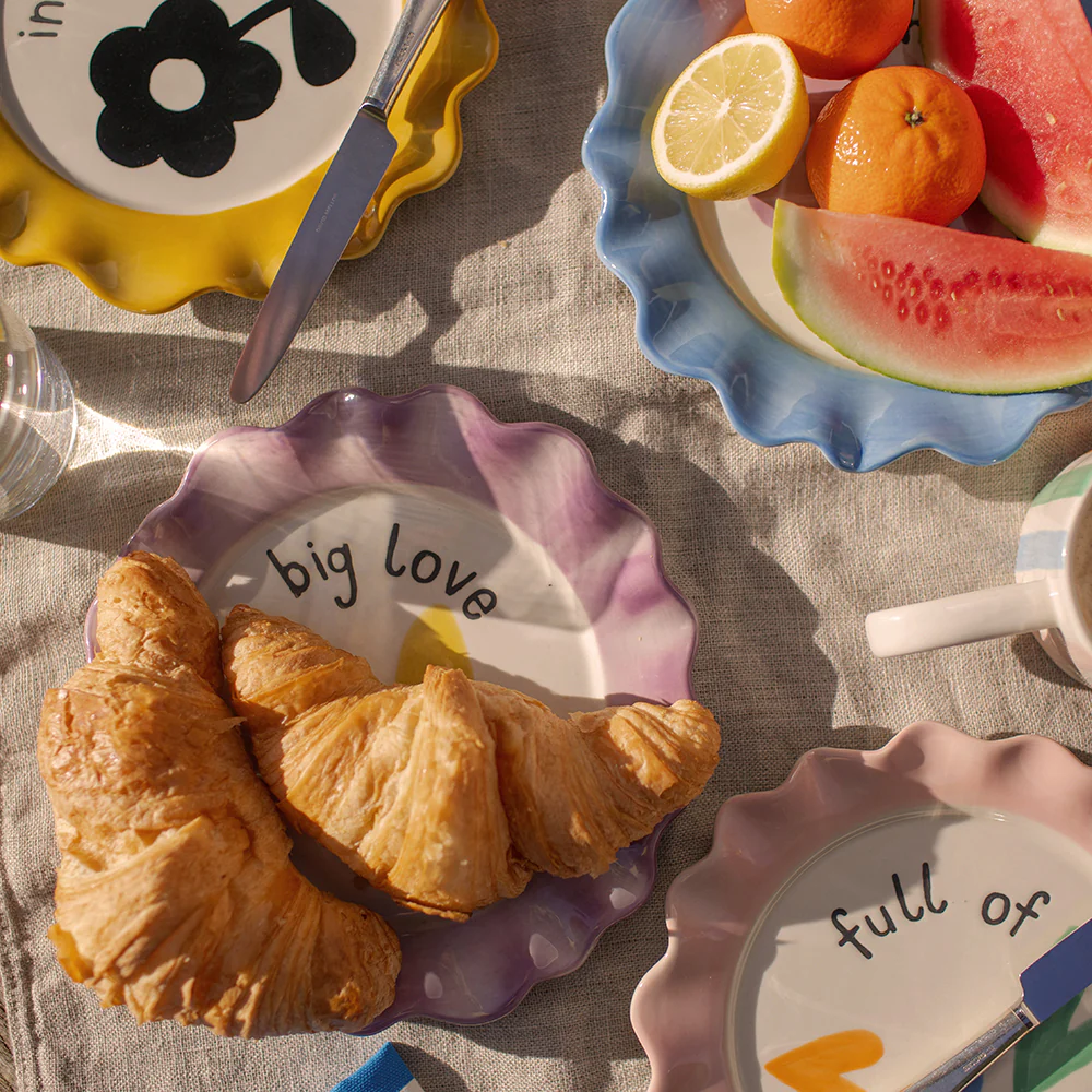 Bring bold personality and fun into your kitchen with this hand-painted, glazed stoneware plate from Caroline Gardner. Each plate boasts a unique print and contrasting scalloped rim, making it perfect for individual purchase or as a set.