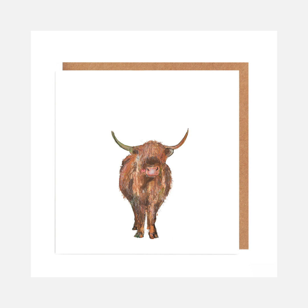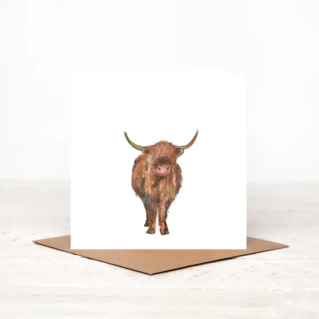 This beautifully illustrated greetings card from Catherine Rayner features Magnus! I'm not sure he can see us through that shaggy fringe but he's a very handsome chap under all that hair! Magnus started life as a limited edition silk screen print along with some of Catherine's other 'coos'. These lovely animals remain very popular - and not only North of the border!