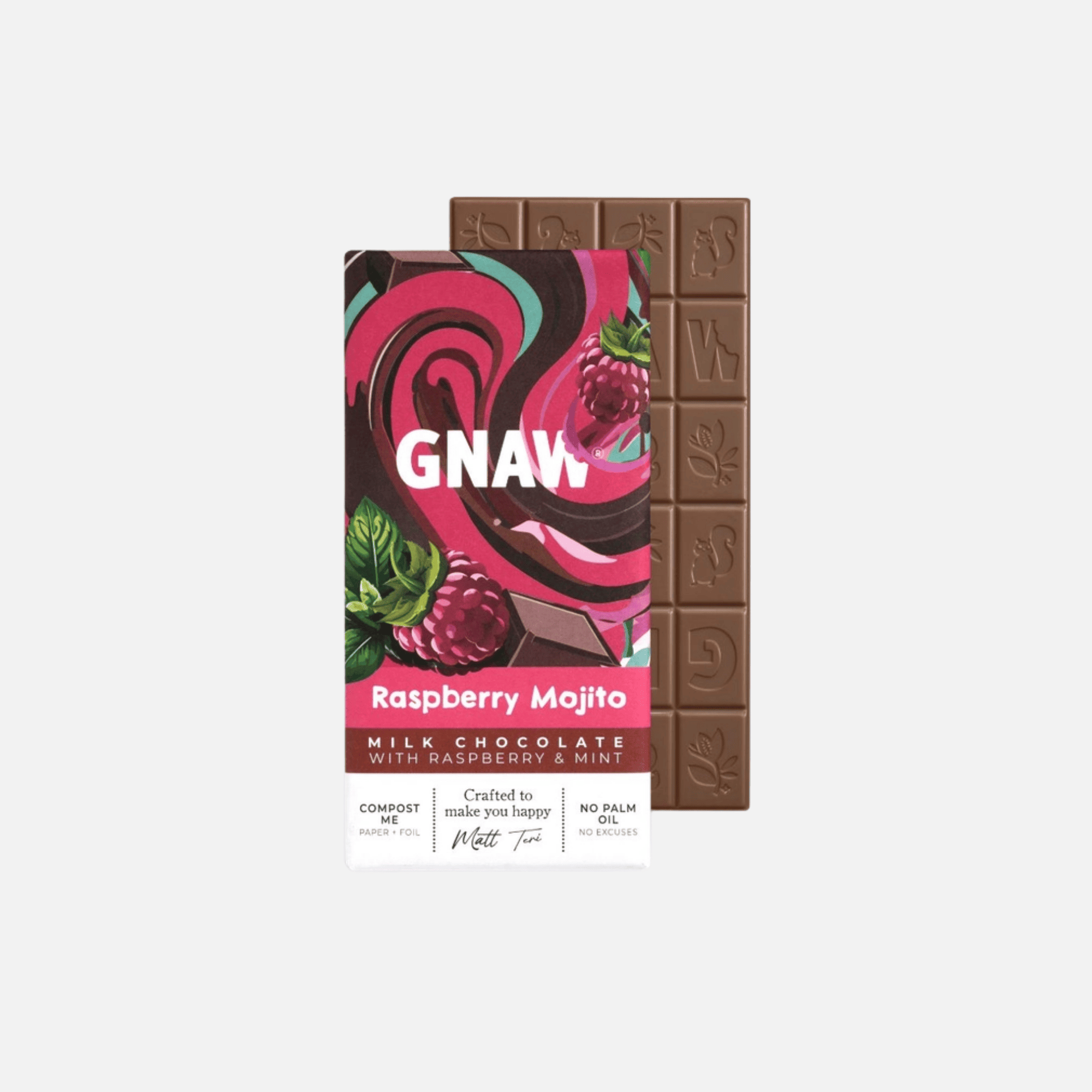 Tangy meets minty, wrapped in smooth milk chocolate. This Raspberry Mojito Milk Chocolate Bar by Gnaw blends the bright zing of raspberries with a refreshing hint of mint, all balanced by the creamy richness of single-origin Colombian cocoa. A refreshingly indulgent twist on classic milk chocolate.