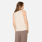 A softly shimmering wardrobe staple, the Evy Vest Top brings lightness and elegance to warm-weather dressing. The subtle metallic striped texture catches the light beautifully, while the scoop neckline and loose, straight fit create an easy, flattering silhouette. Lightweight with a gentle drape, it’s perfect for layering or wearing solo through the seasons.