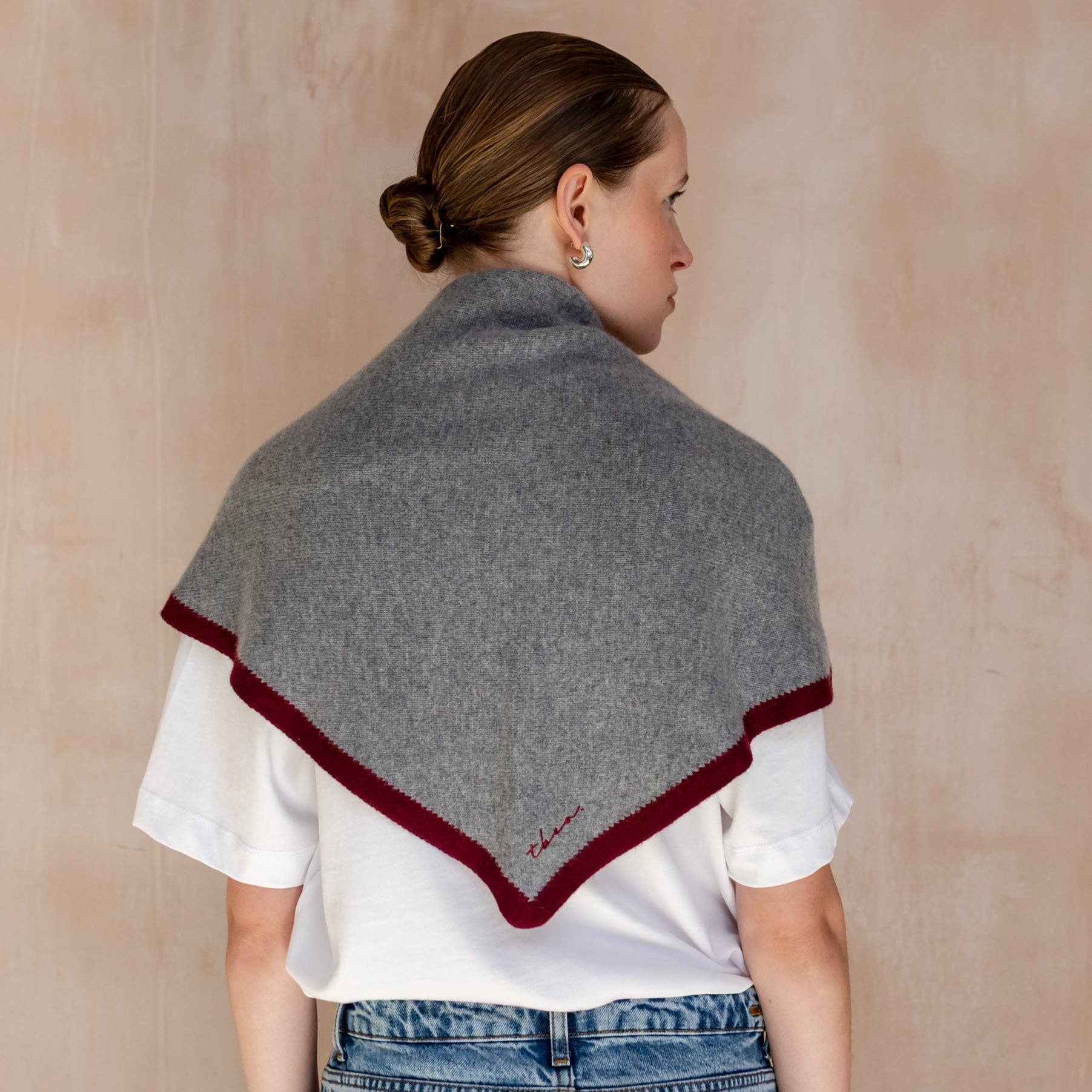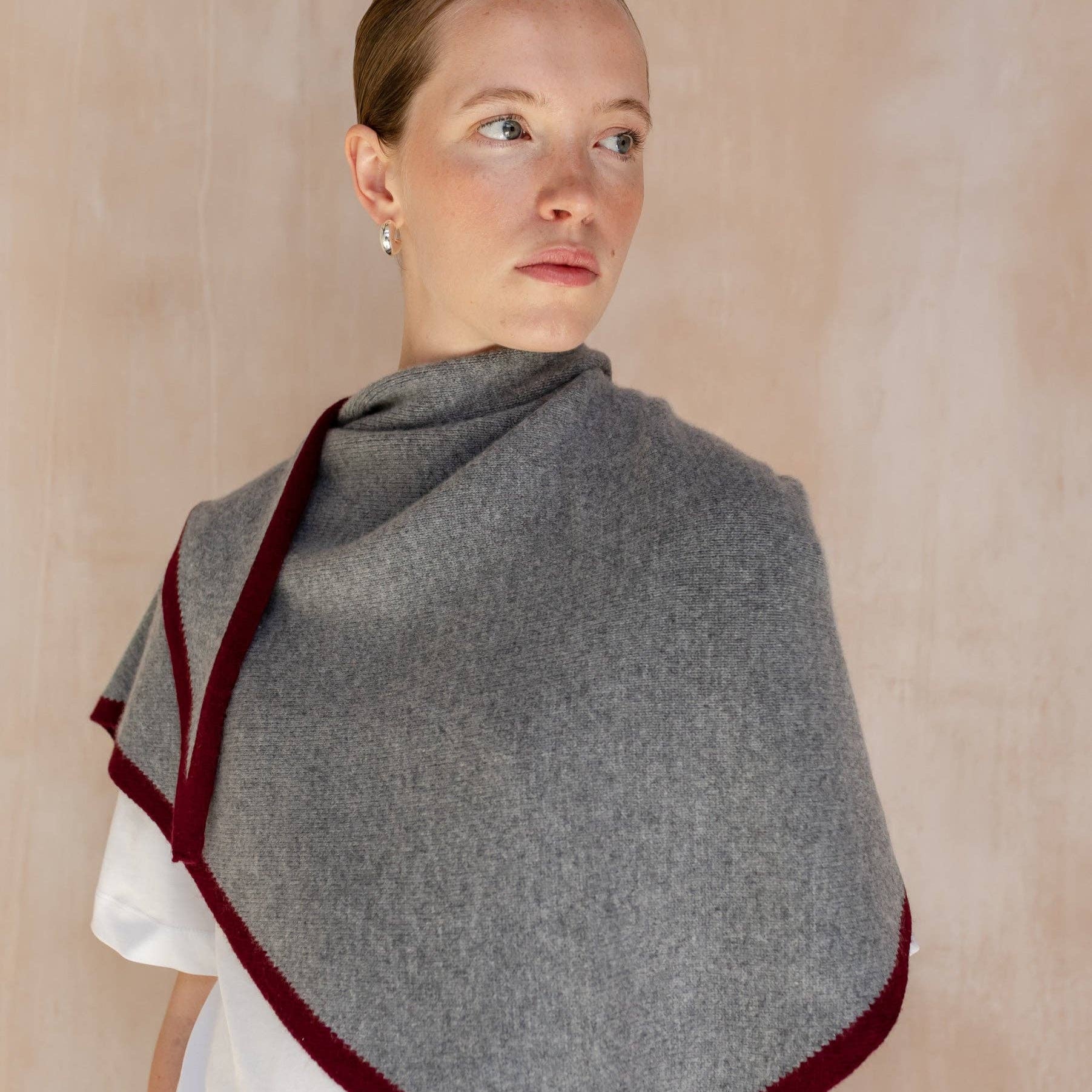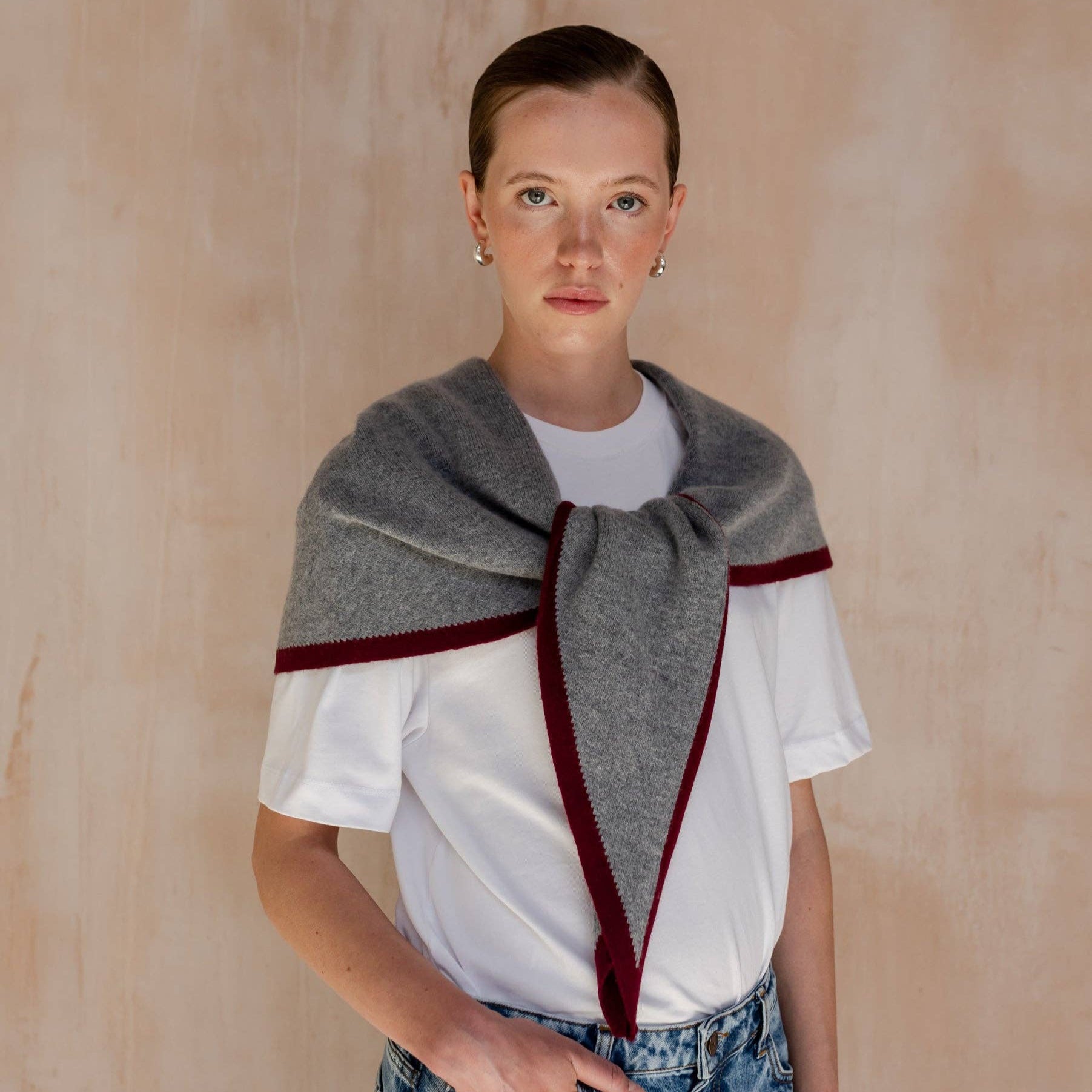 Large Merino Wool Triangle Scarf | Charcoal & Burgundy