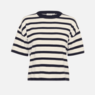 A fresh take on the classic Breton stripe, this short-sleeve knit offers effortless style with a modern, relaxed feel. The soft handle, clean round neckline and easy silhouette make it a go-to piece for transitional dressing. In a chic Winter White Night palette, it pairs seamlessly with denim, tailoring, and everything in between.