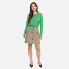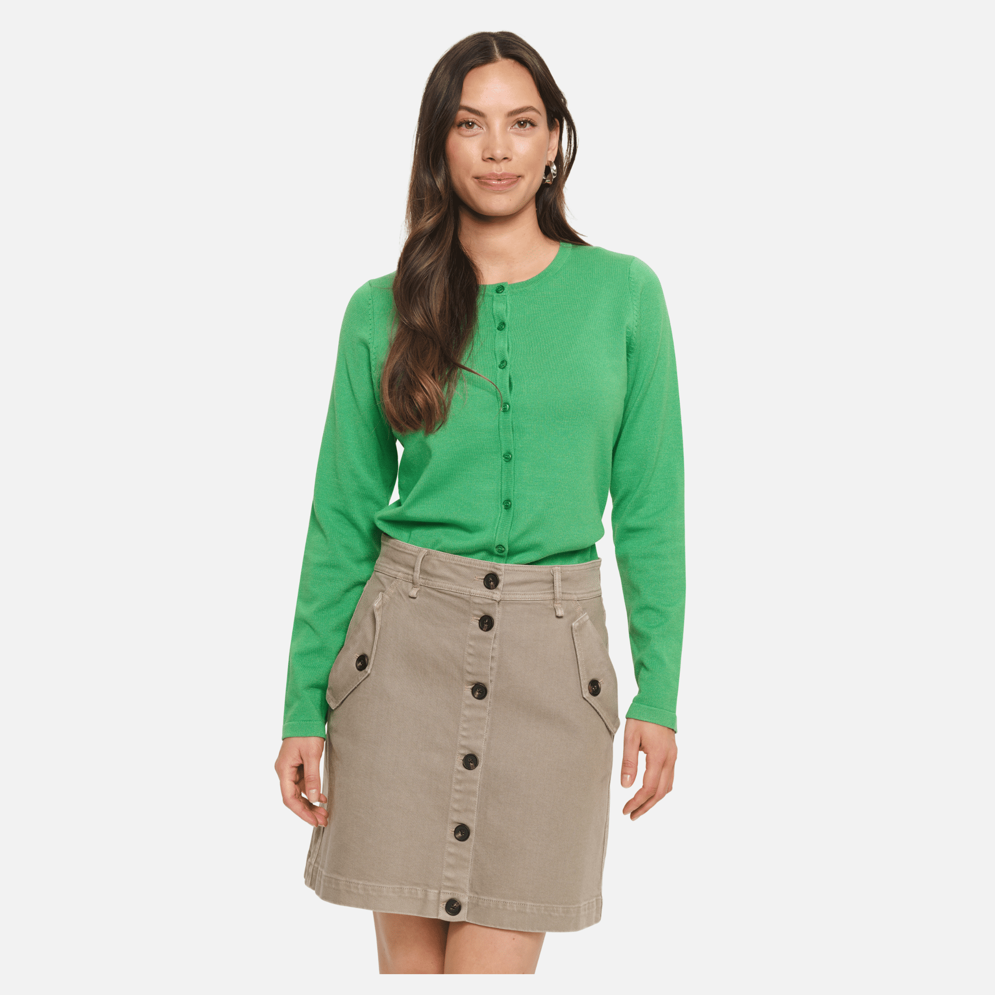 A soft, lightweight knit in the vibrant Greenbriar shade, the Mila Cardigan is a versatile layer designed for effortless everyday styling. Its classic round neckline, gentle rib trims, and clean button-through front make it a timeless wardrobe staple. Easy to layer and beautifully comfortable, it’s a piece you’ll reach for season after season.