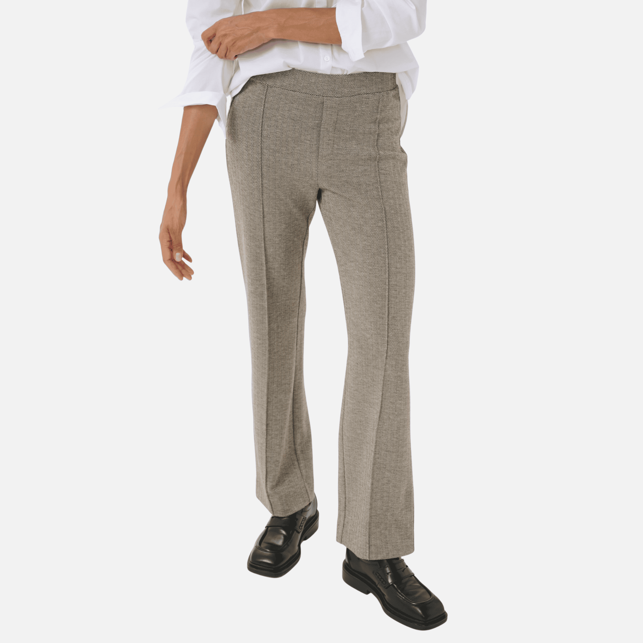 The Pontas Trousers by Part Two are a classic choice for refined everyday style. Featuring a timeless herringbone pattern and a straight-leg silhouette, they’re designed with a comfortable elasticated waistband for ease of wear. Finished with pressed front seams for a tailored touch, these trousers effortlessly transition from office to off-duty.