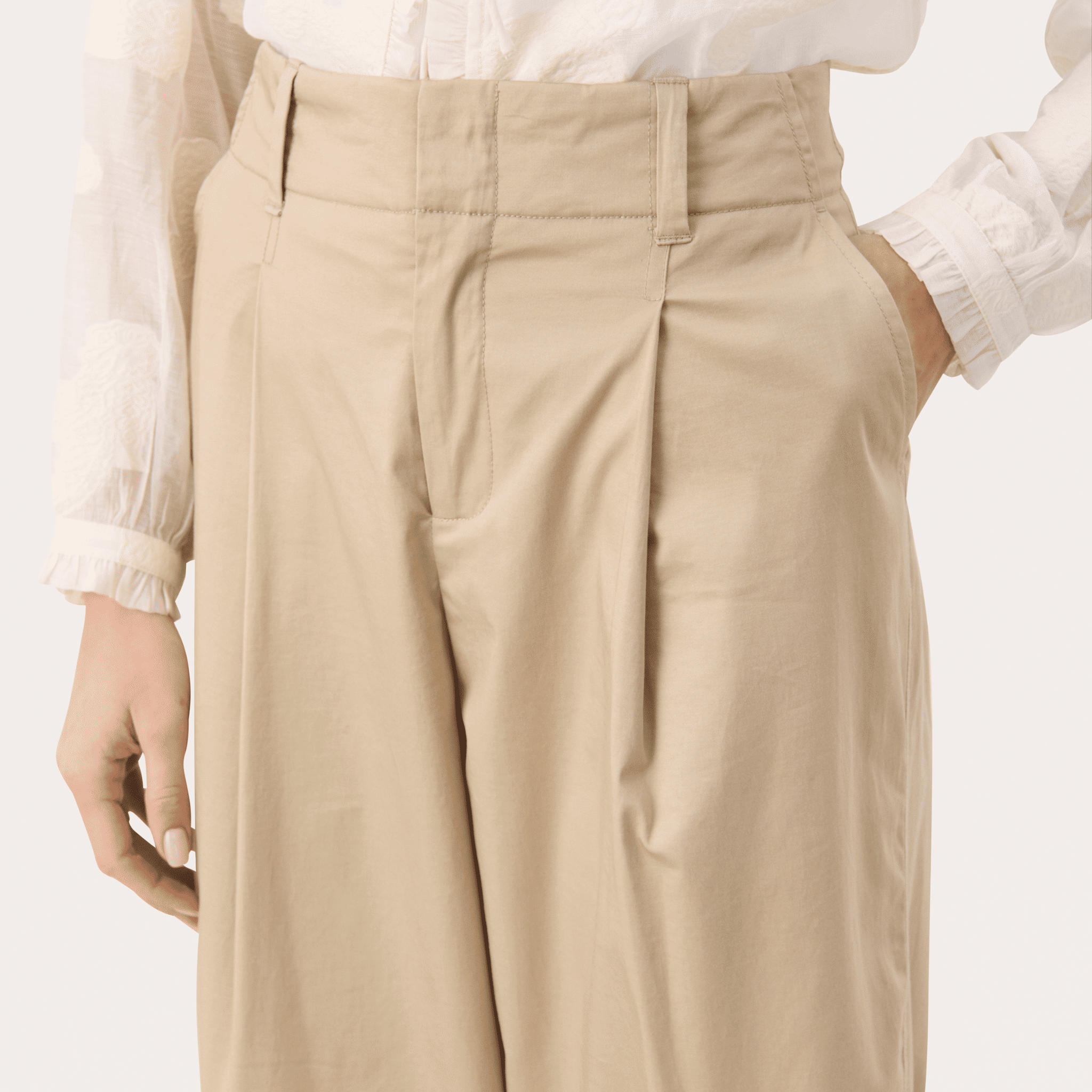 A relaxed wardrobe staple, the Ramize Chino Trousers by Part Two offer effortless style with everyday ease. Cut from a soft cotton blend, they feature a loose, cropped silhouette with tailored details like pressed pleats and turn-up hems. Whether you're dressing for the office or a laid-back day out, these versatile trousers are a chic, comfortable choice.