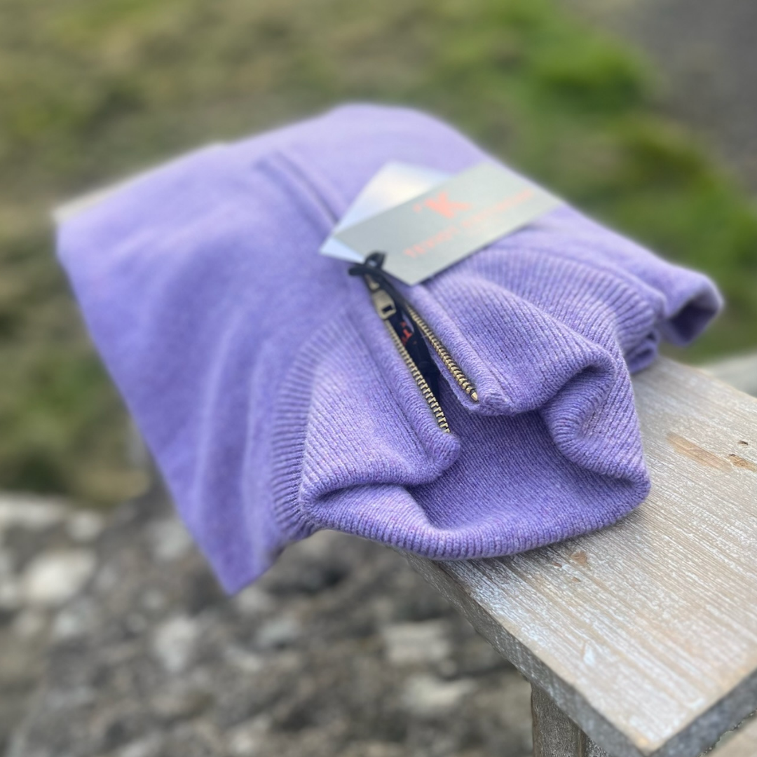 This locally crafted sweater features a ribbed and zipped funnel neck, set-in sleeves and long ribbed cuffs and hem. An essential addition to any wardrobe, this versatile piece can be elegantly styled with a jacket for a chic look or casually paired with jeans. Ideal for layering in our unpredictable British weather!