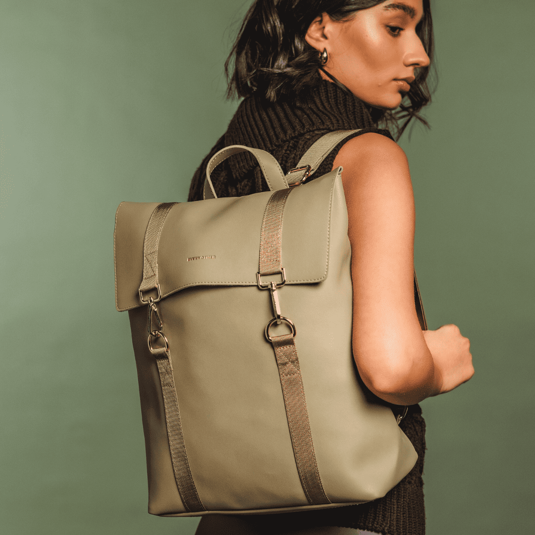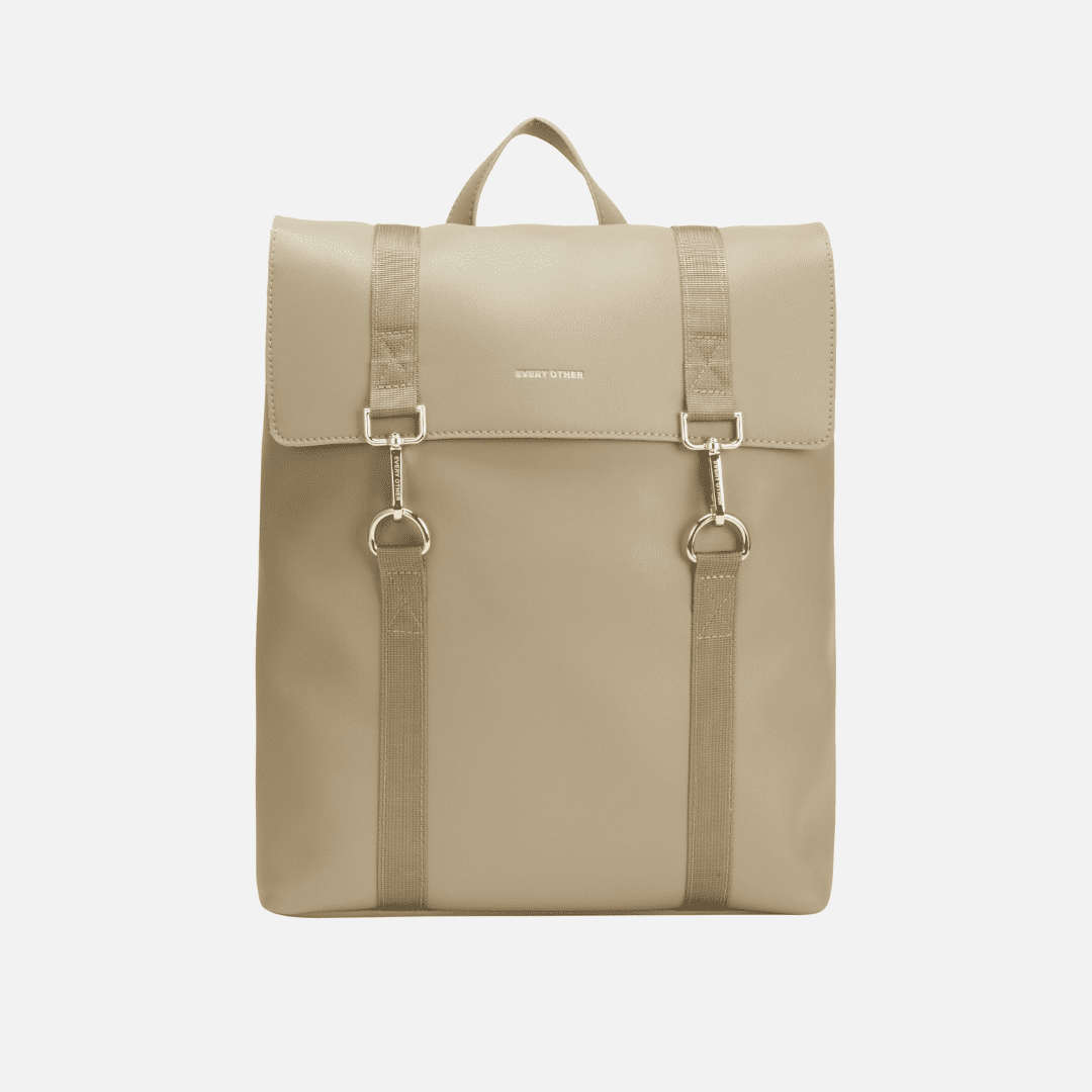 The Double Clip Backpack in Soft Green from Every Other blends practicality with contemporary design. Crafted from smooth faux leather, it features a structured shape with twin front clip fastenings for a modern utility-inspired look.