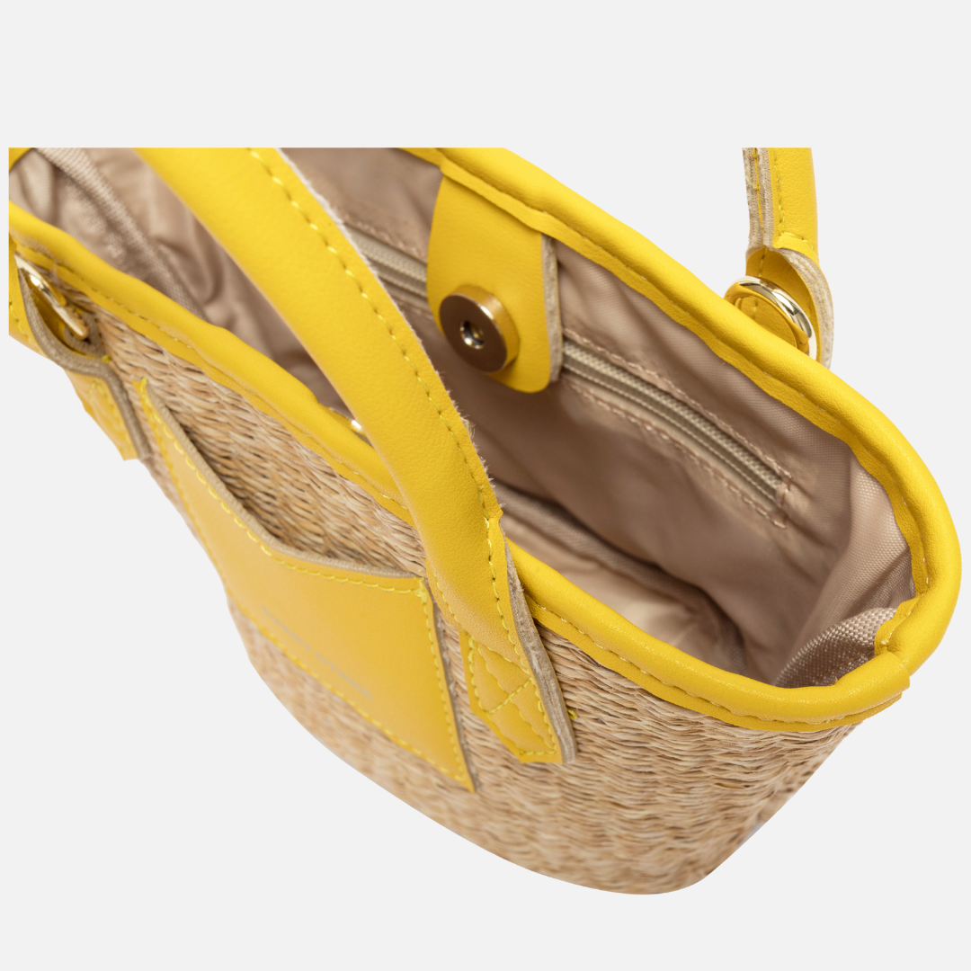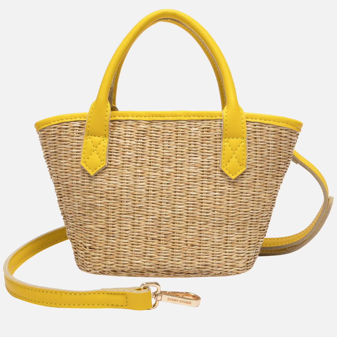 Small Sereno Raffia Basket Tote Bag | Yellow