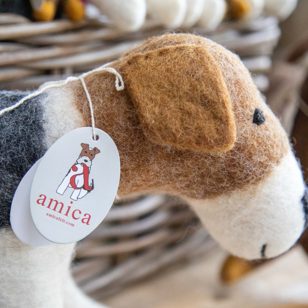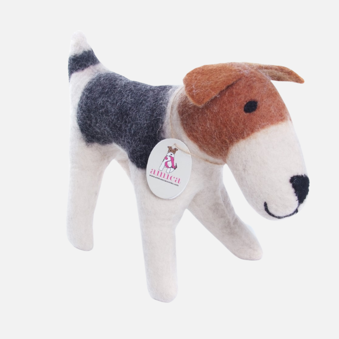 Meet Freddie – your new woolly best friend! This loyal little Fox Terrier is handmade from 100% wool felt and crafted with love in Nepal for Amica. Each pup is carefully moulded, stuffed, and finished with individually applied markings, making every Freddie as unique as the real-life dogs they’re inspired by.