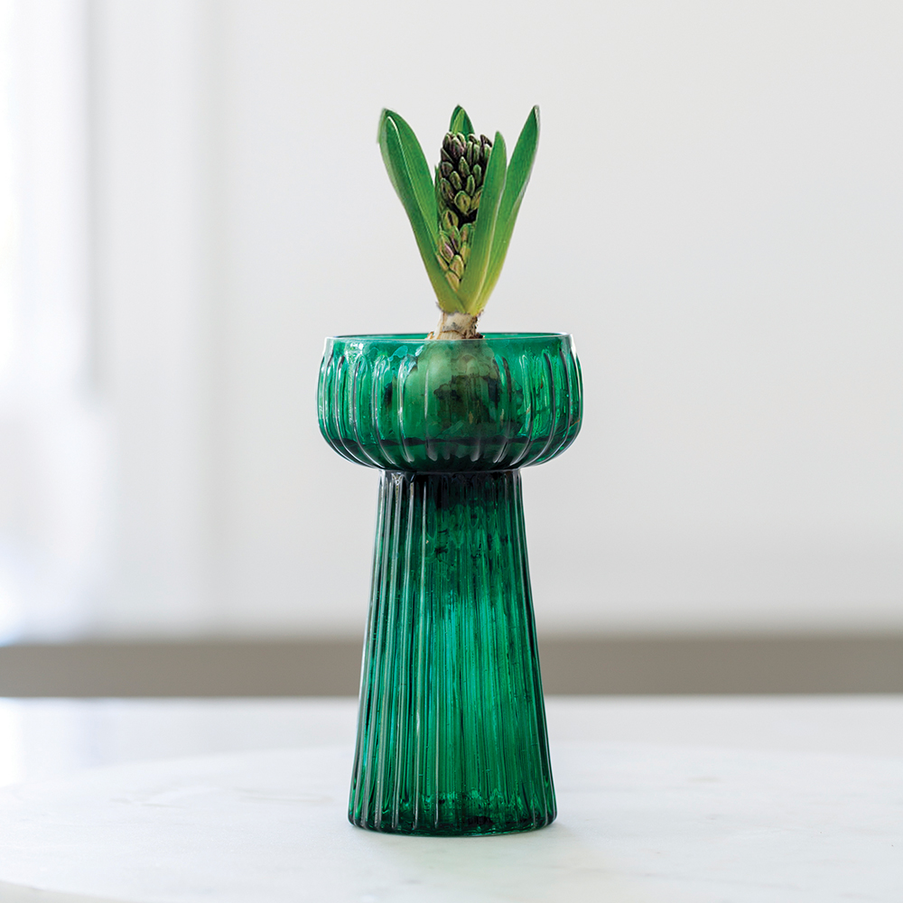 Transform your space into a serene haven with the Ribbed Hyacinth Vase from Grand Illusions. Perfect as a gift or as a self-indulgent treat, this intricately crafted vase adds a touch of elegance to any room. Choose from three stunning hues - clear, green, and grey - to match your personal style.
