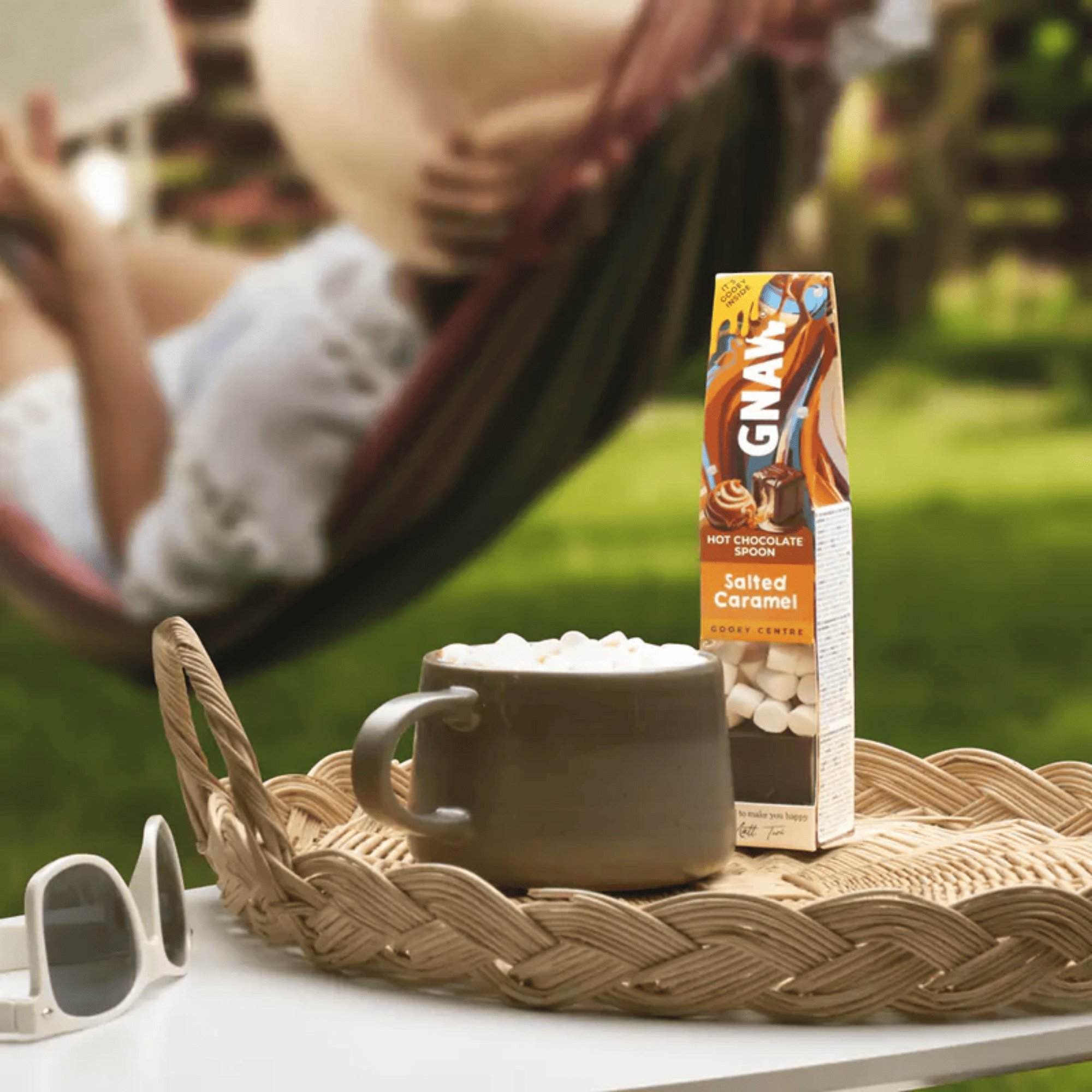 Stir up a little luxury with our Salted Caramel Soft-Centre Hot Chocolate Spoon by Gnaw Chocolate. This isn’t your everyday hot chocolate, it’s a velvety, rich treat with a molten caramel core that slowly oozes into your mug as it melts. Sweet, salty, and irresistibly smooth, it’s hot chocolate with a twist.