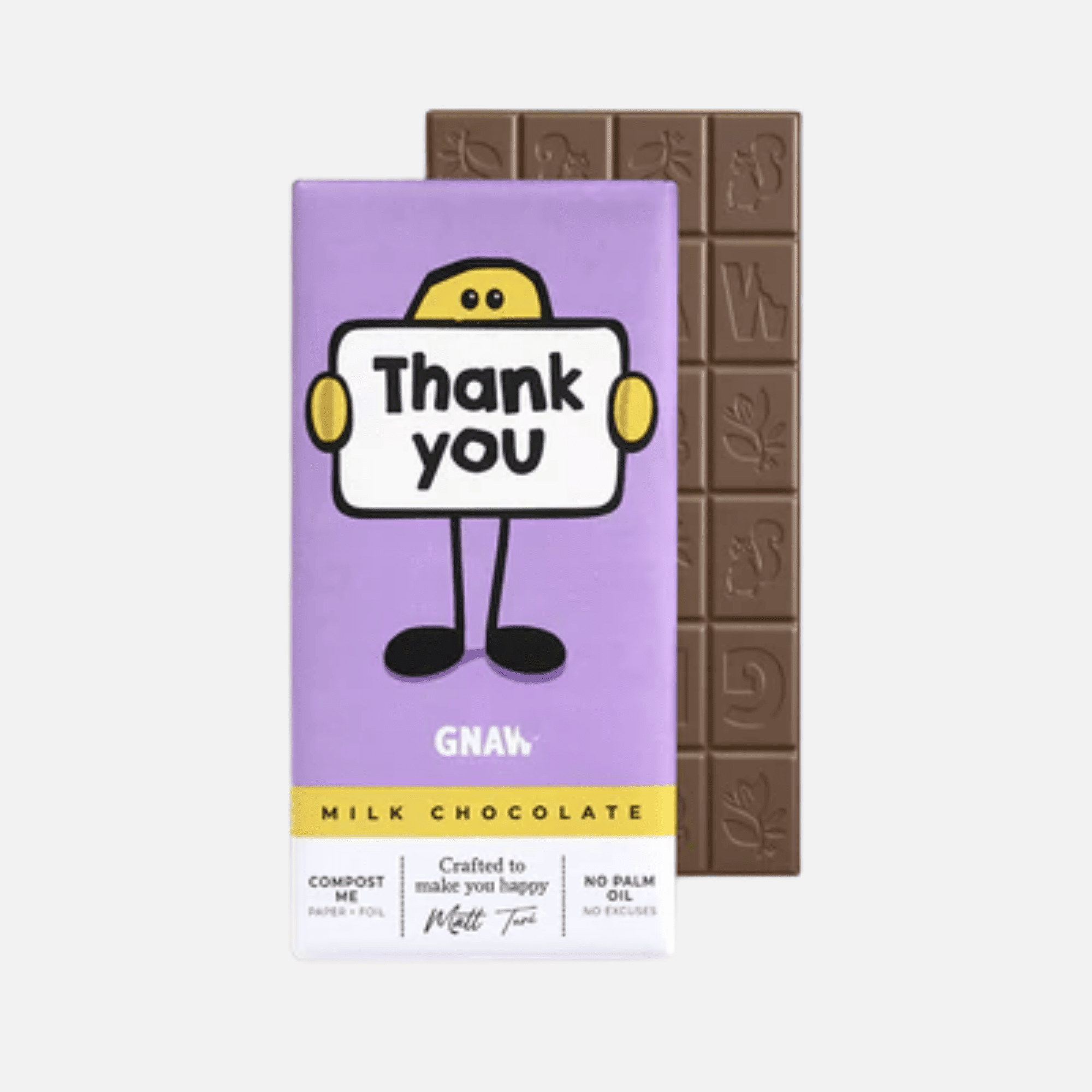 Express your gratitude with our ‘Thank You’ Milk Chocolate Bar by Gnaw Chocolate, made from smooth single-origin Colombian milk chocolate that speaks louder than words. Whether it’s a small gesture or a grand thank you, this bar delivers a heartfelt message wrapped in pure indulgence.