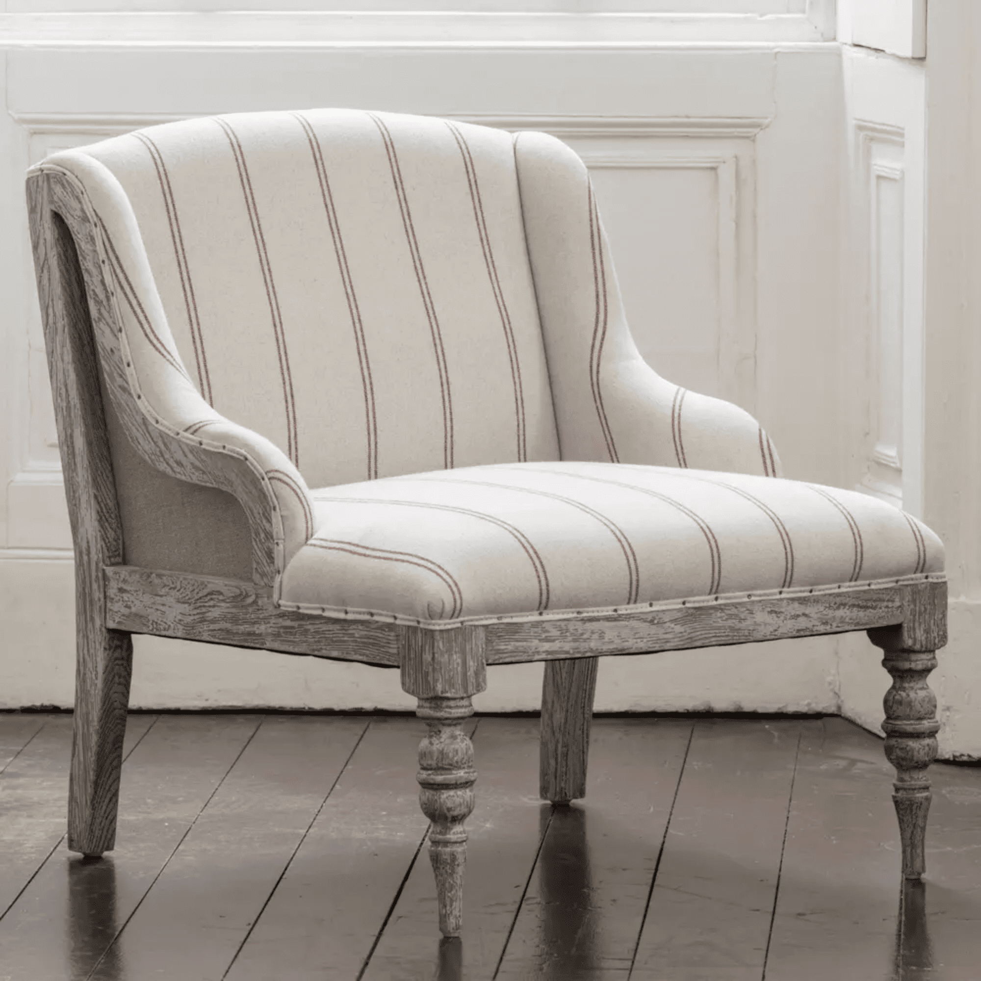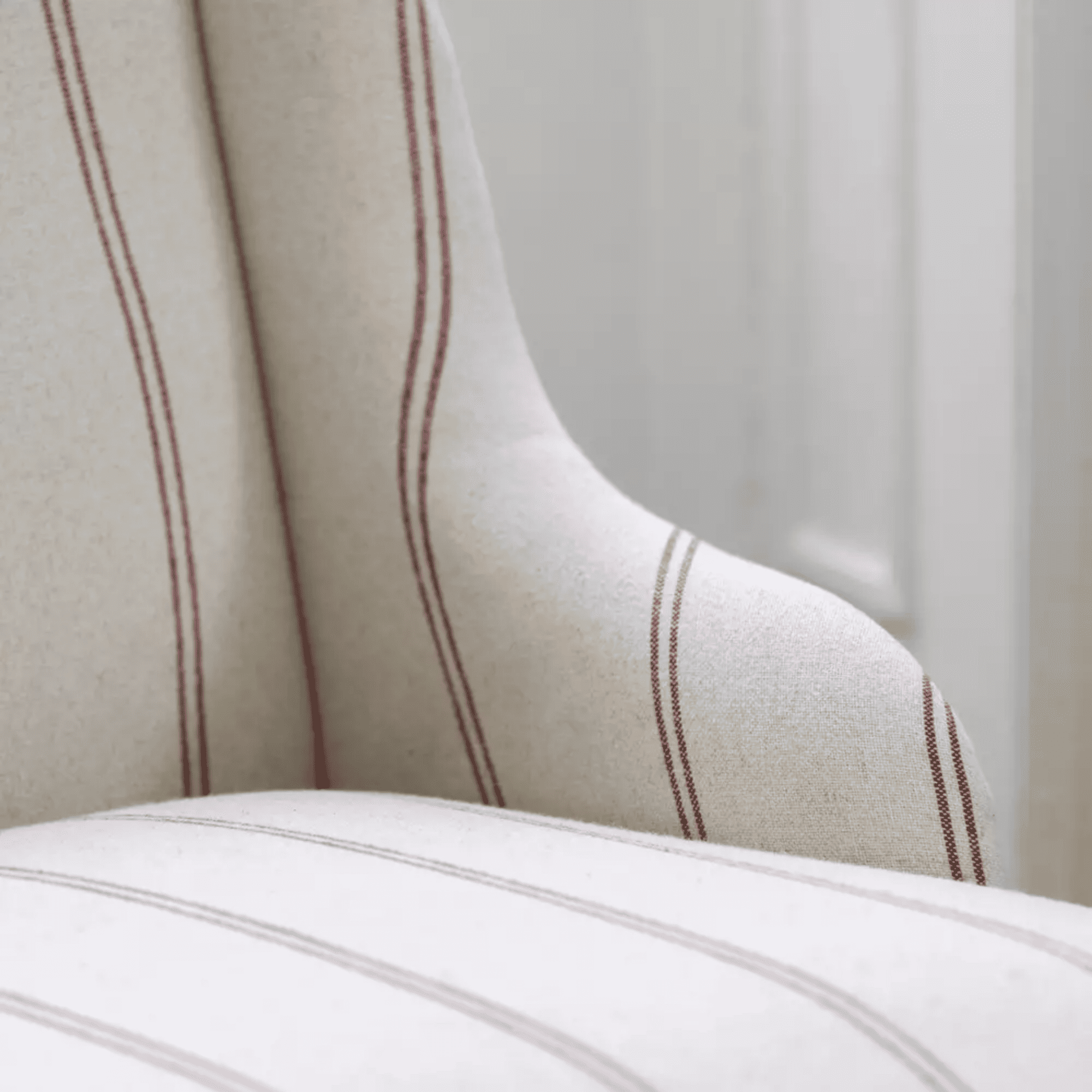 Bring charm and comfort to your home with the Margot Leisure Chair. Upholstered in a timeless red ticking stripe linen-mix fabric, this elegant piece adds warmth and style to any interior. With its gently curved back and generous seat, it's the perfect chair for curling up with a good book or relaxing by the fire.
