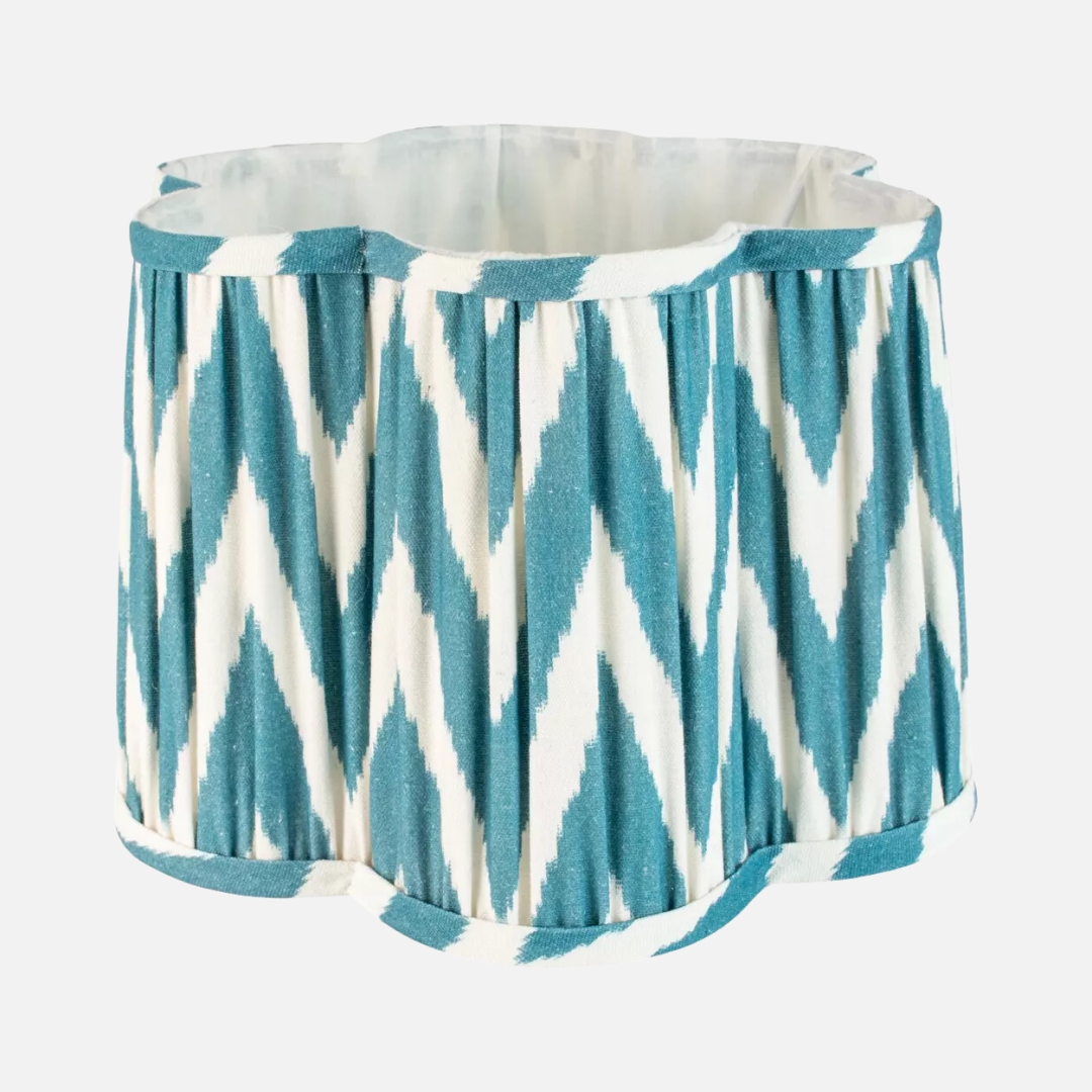 Indulge in the expertise of skilled craftsmen with this handcrafted lampshade, made with meticulous attention to detail to guarantee lasting elegance and durability. The pleated cotton fabric adds a touch of luxury, while the ikat design infuses a hint of worldly charm. Versatile enough to fit any interior style - traditional, contemporary, or eclectic - this piece will bring sophistication and flair to your space. Illuminate your surroundings with the perfect touch of refinement.