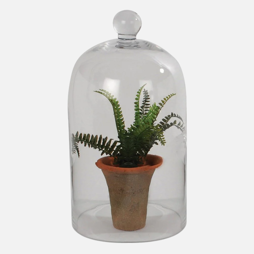 This gorgeous, clear glass cloche is an elegant addition to any table or mantelpiece. Perfect for covering something delicious, displaying a potted plant, or perhaps encasing a string of warm-lit fairy lights.