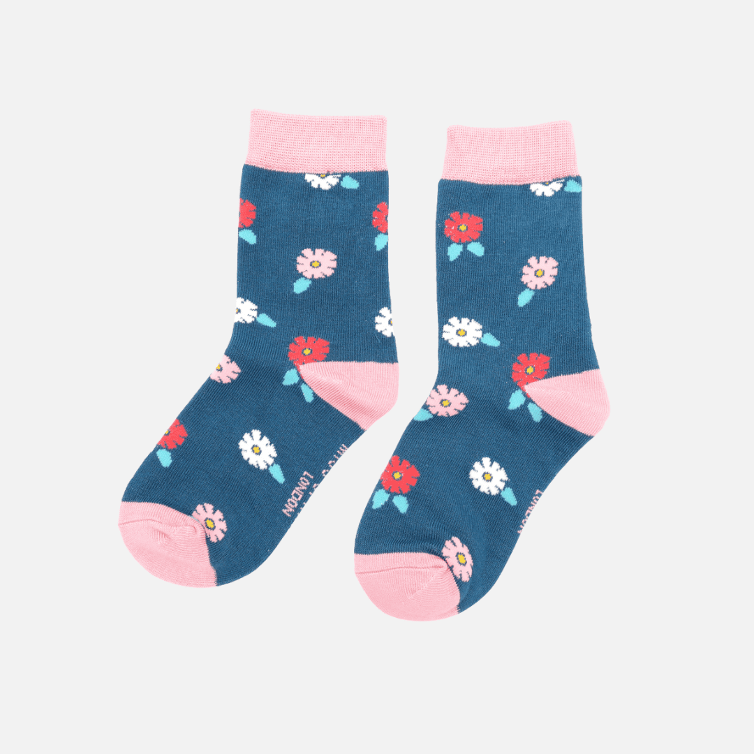 Miss Sparrow Girls Socks | Ditsy Flowers Navy
