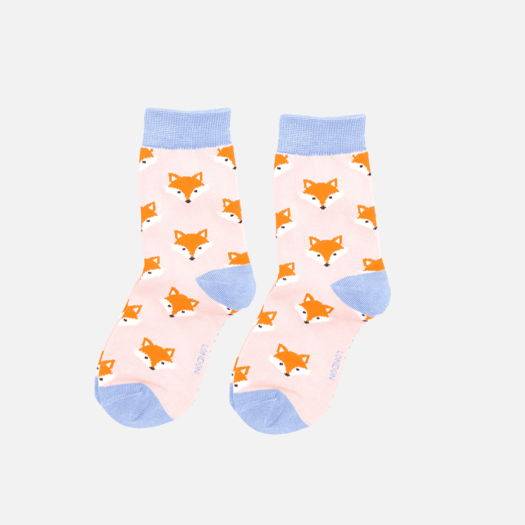 Miss Sparrow Girls Socks | Fox Faces Dusky Pink