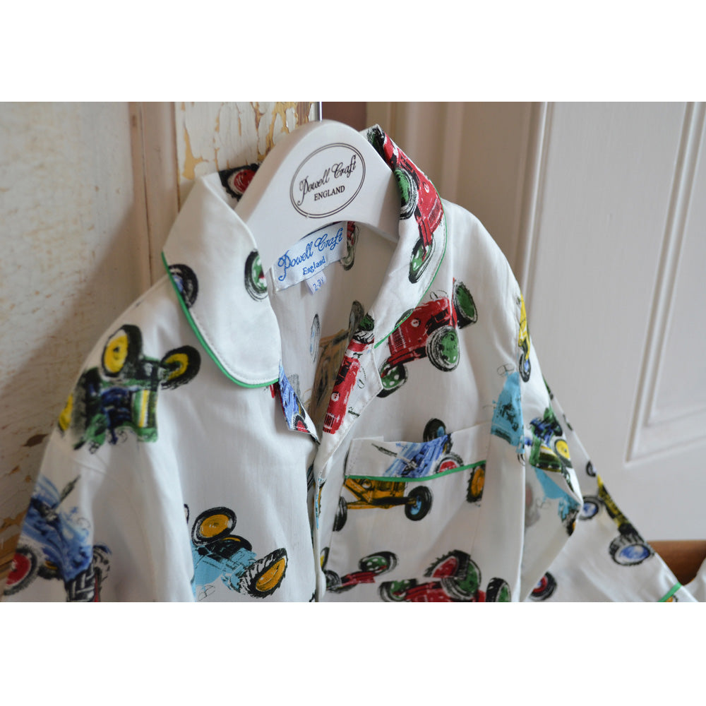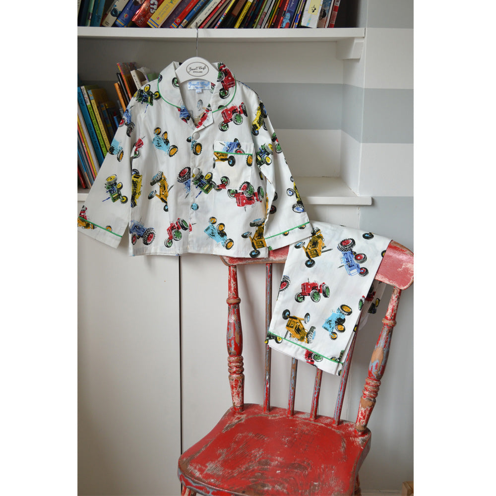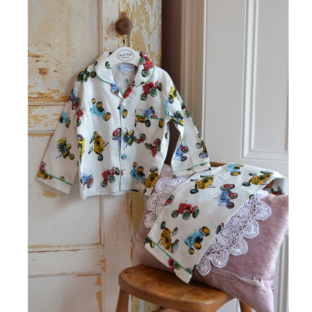 Bertie Vintage Tractor | Kids Traditional Cotton Button Down Pyjamas