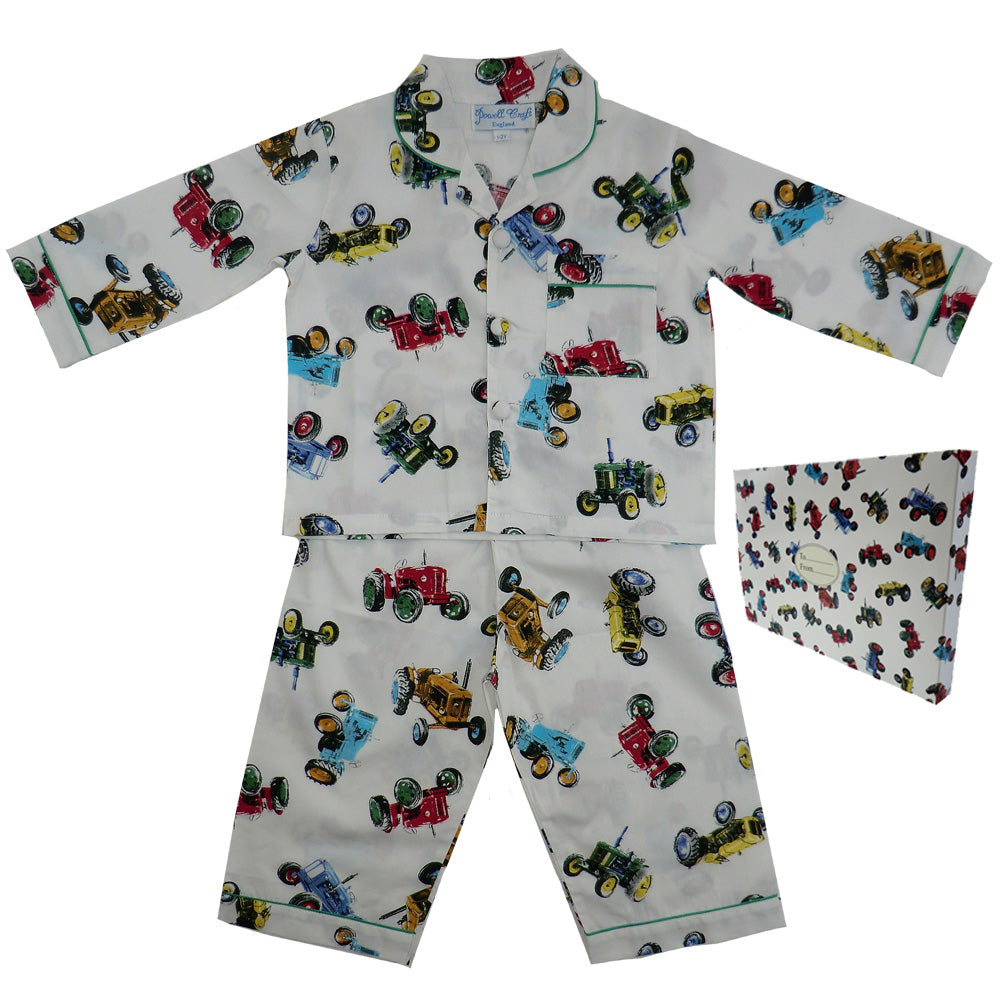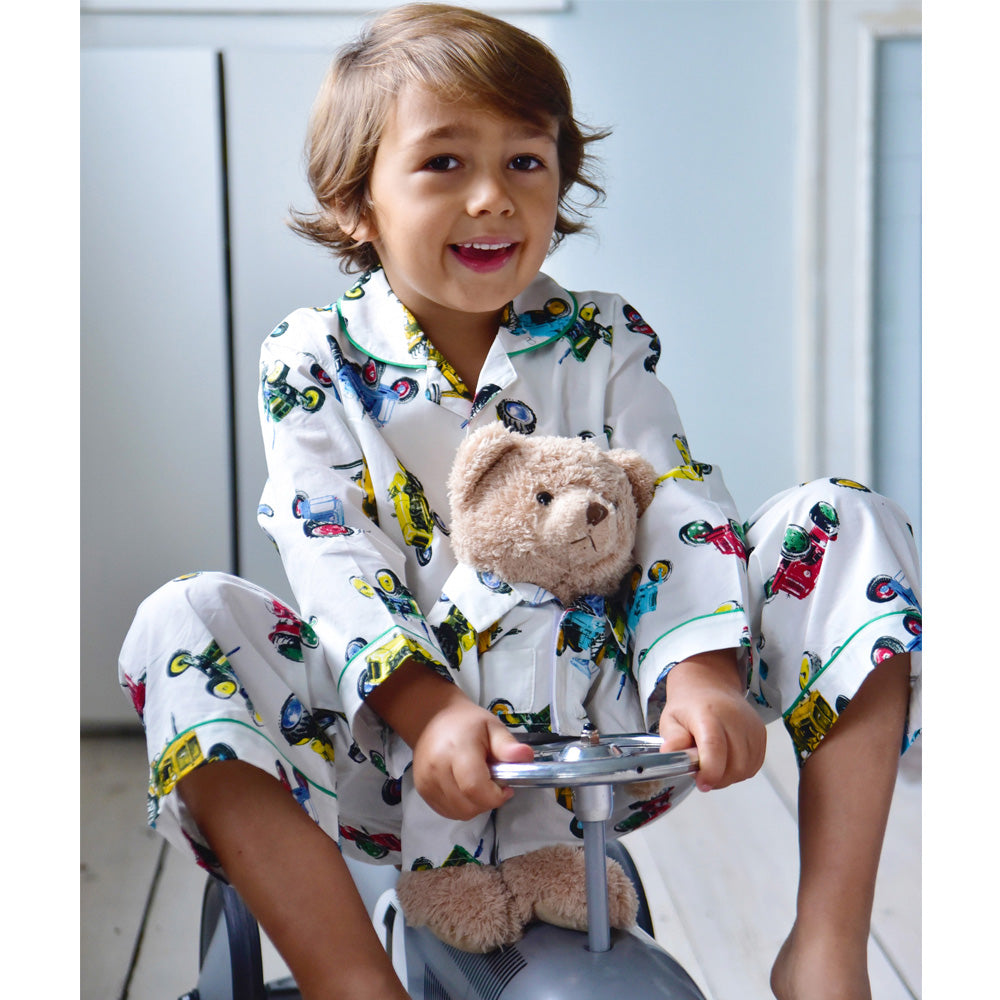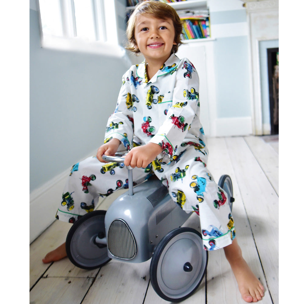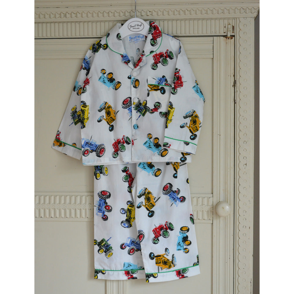Bertie Vintage Tractor | Kids Traditional Cotton Button Down Pyjamas