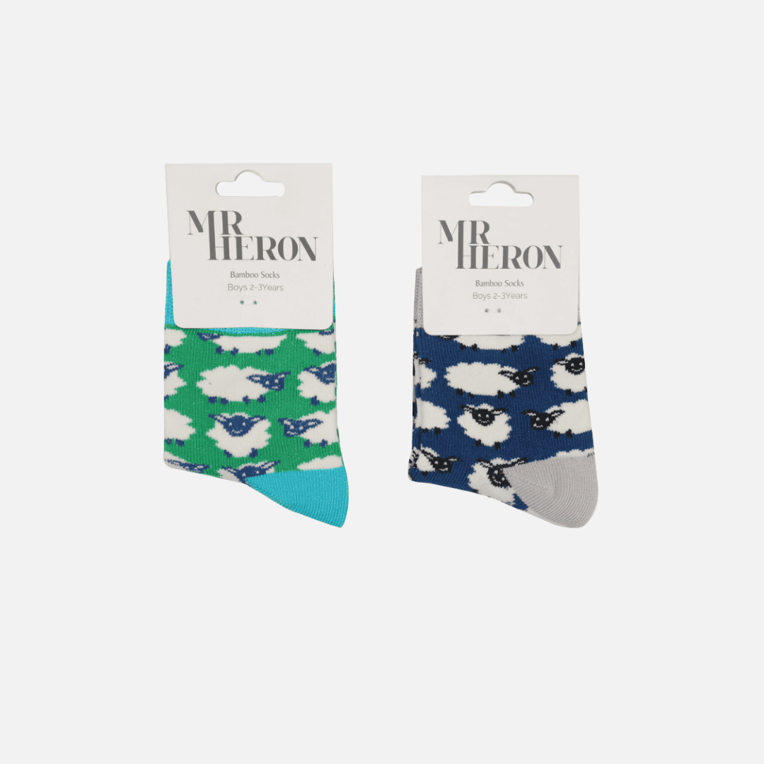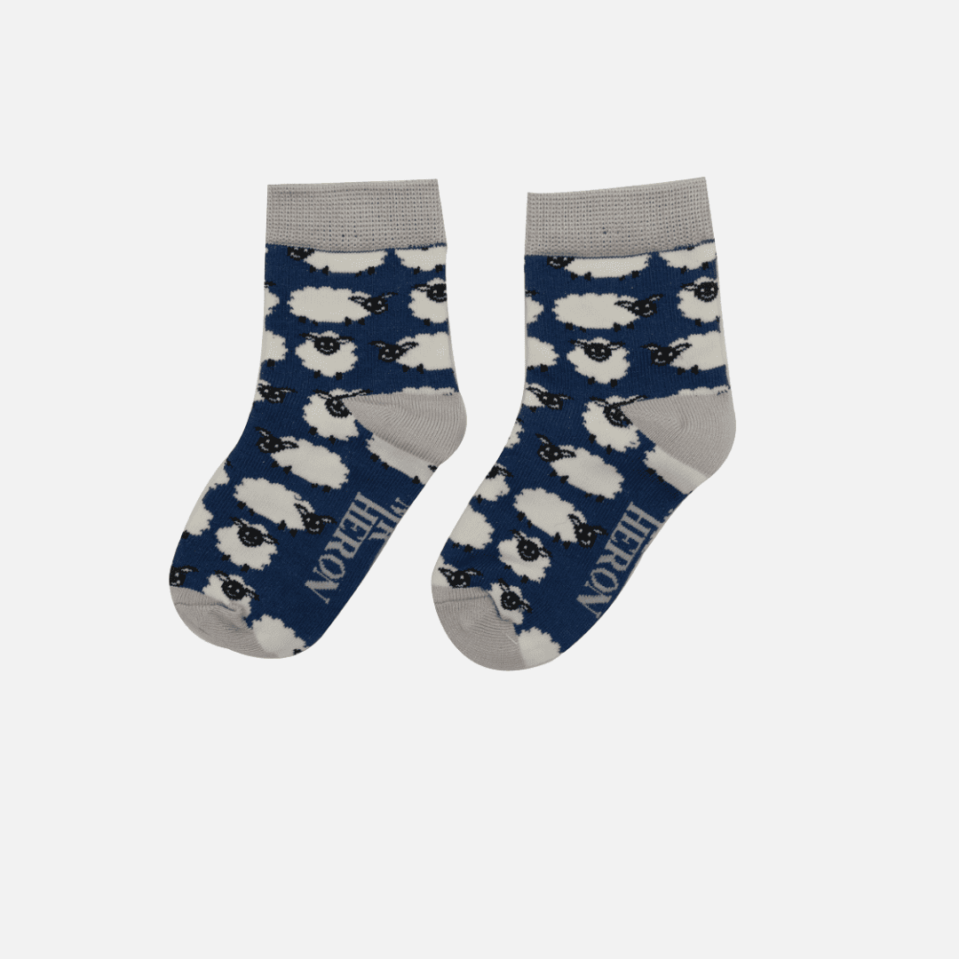 A cute pair of socks from Mr Heron featuring playful sheep on a classic navy background. Crafted from a soft cotton blend, these fun socks are comfortable, breathable, and perfect for everyday wear.