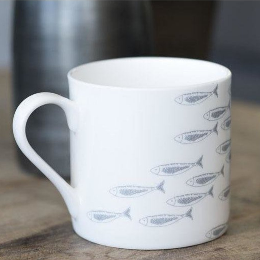 This lovely fish mug is the perfect gift for sea lovers and fisherfolk! A fabulous large mug with a very fine drinking edge and decorated with a shoal of Cornish fish.