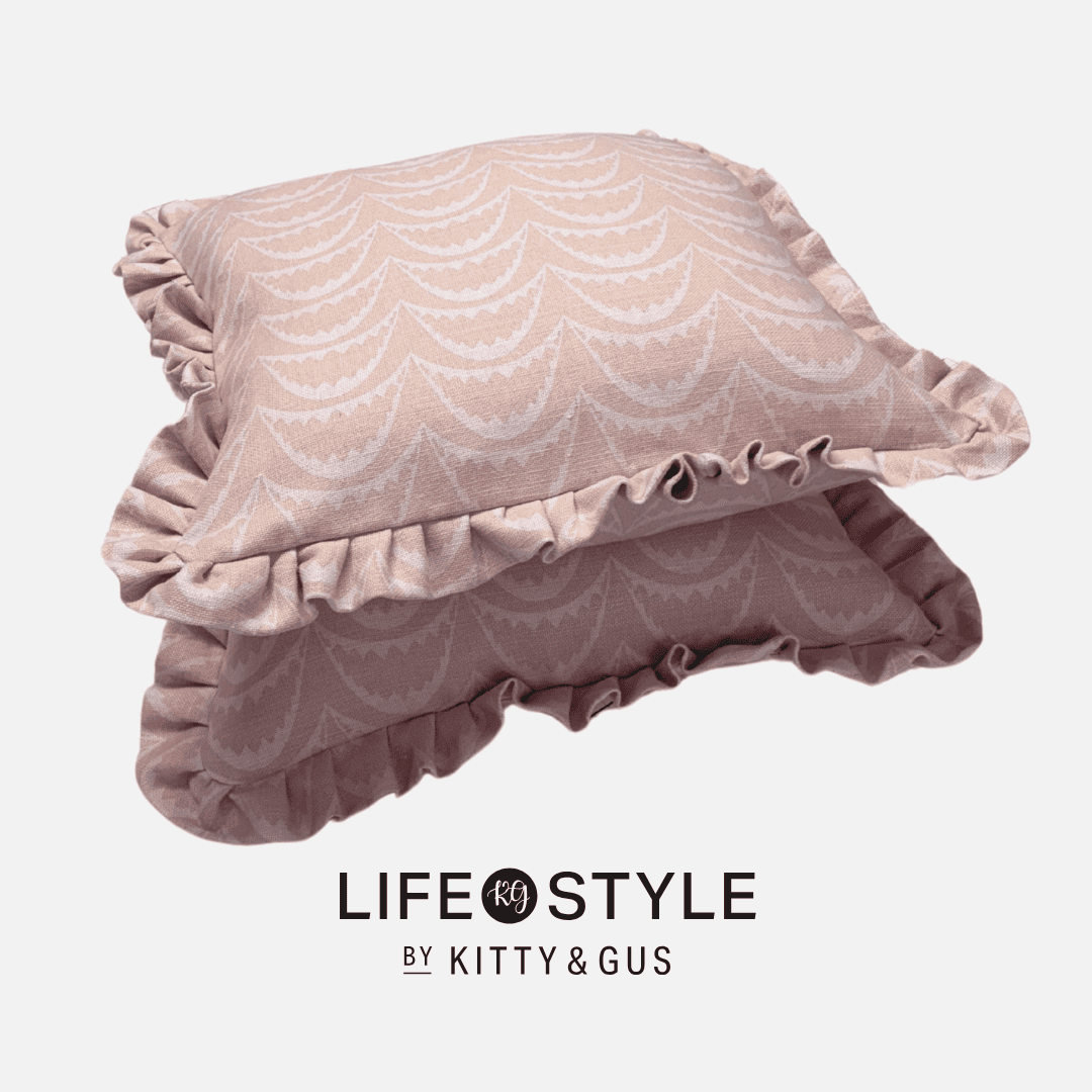 Life.Style by Kitty & Gus – Arcade Square Ruffle Trim Cushion | Pastel Pink