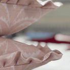 The Pastel Pink colourway features a beautifully detailed small-scale repeat of pretty arches, smooth on the outside, jagged on the in. Beautifully finished with a soft ruffle trim, this cushion adds an extra layer of texture and charm. It's filled with a luxurious feather pad, blending classic style with modern elegance.