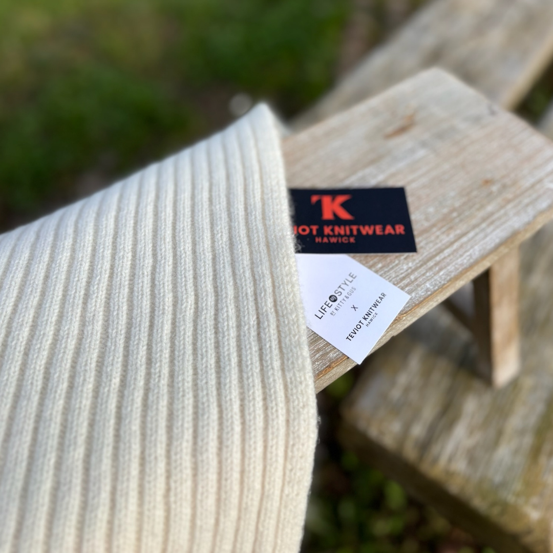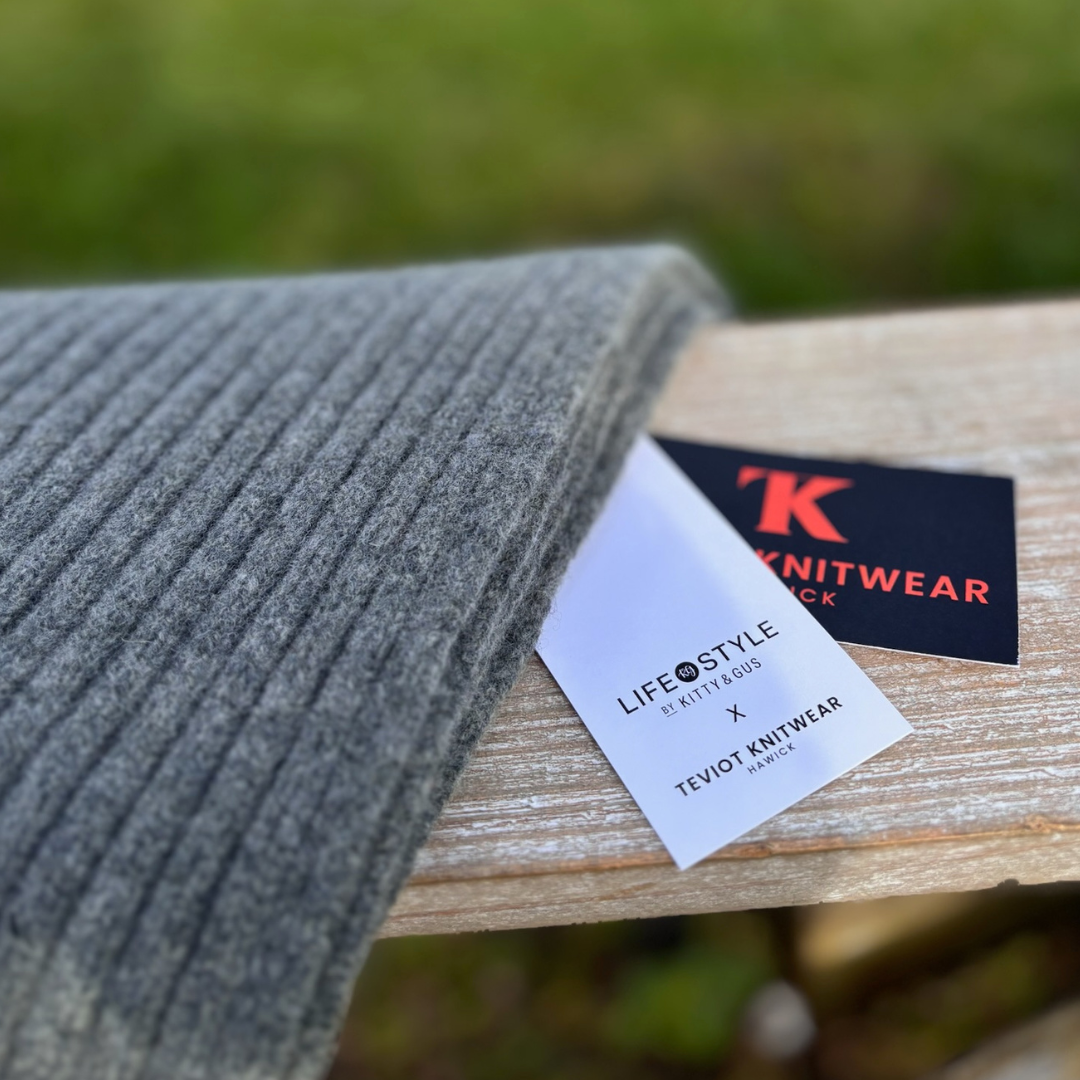 Our collaboration with Teviot Knitwear in Hawick has been so important for us. We always want to support local where we can and you will not get much more local than the heritage mill down the road from us.