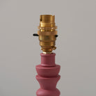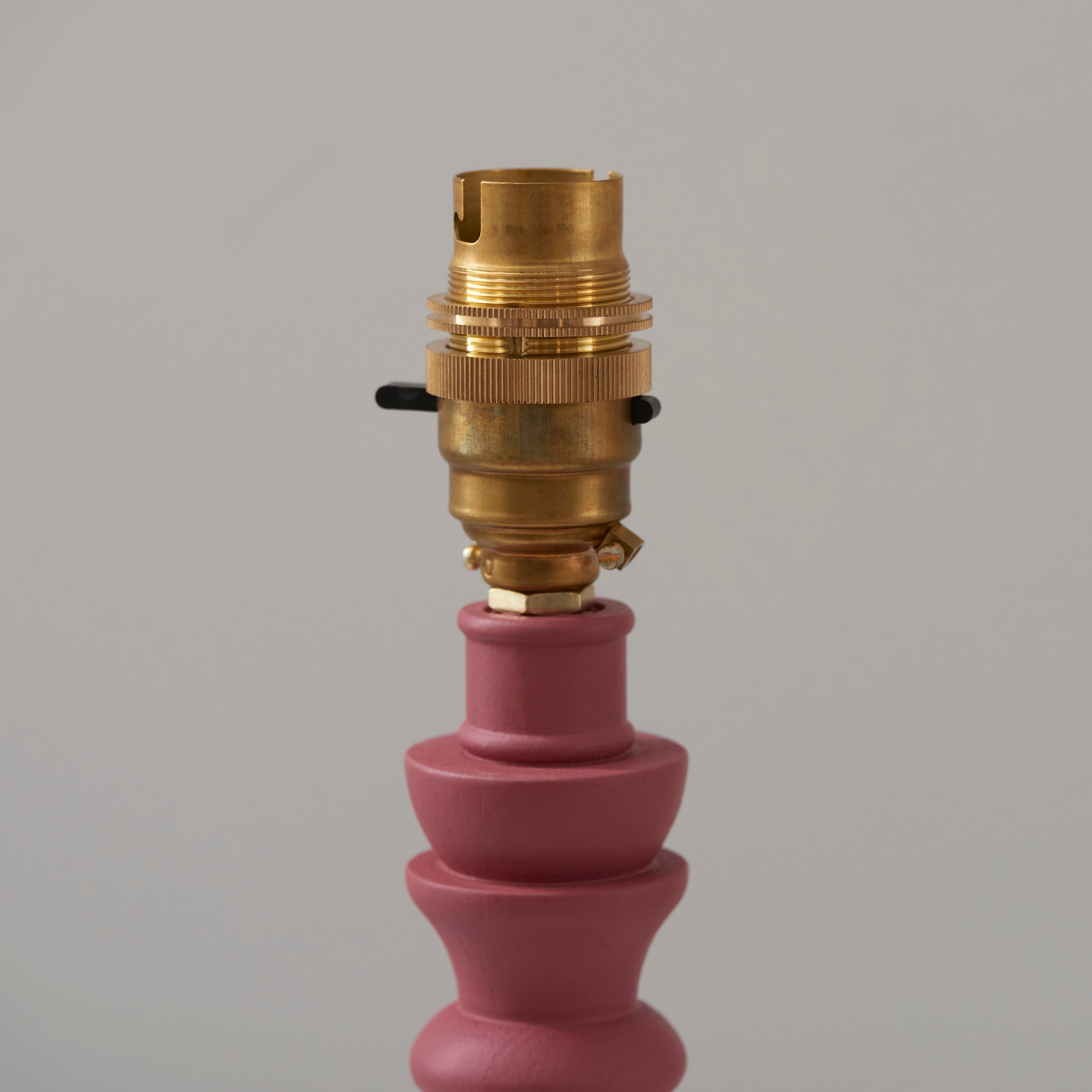 A soft, contemporary twist on a classic shape, this Clay Pink table base brings warmth and charm to any room. The turned spindle silhouette adds gentle character, while the brass B22 switched lamp holder and grey braided fabric flex offer refined finishing touches. Pair with one of our 16cm or 20cm decorative fabric shades to complete a look that’s elegant with a playful hint of colour.