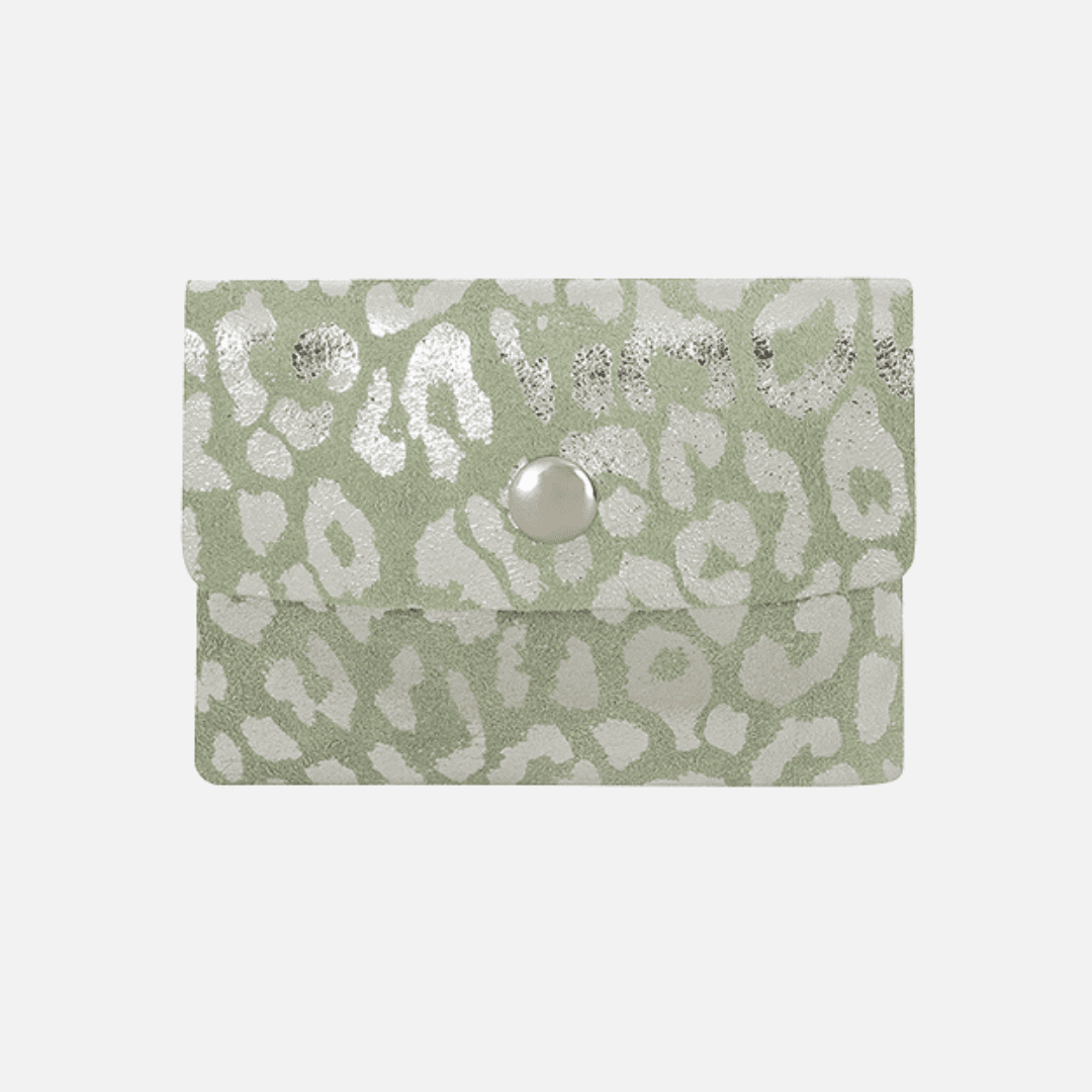 Small Leather Coin Purse | Green & Silver Animal Pattern