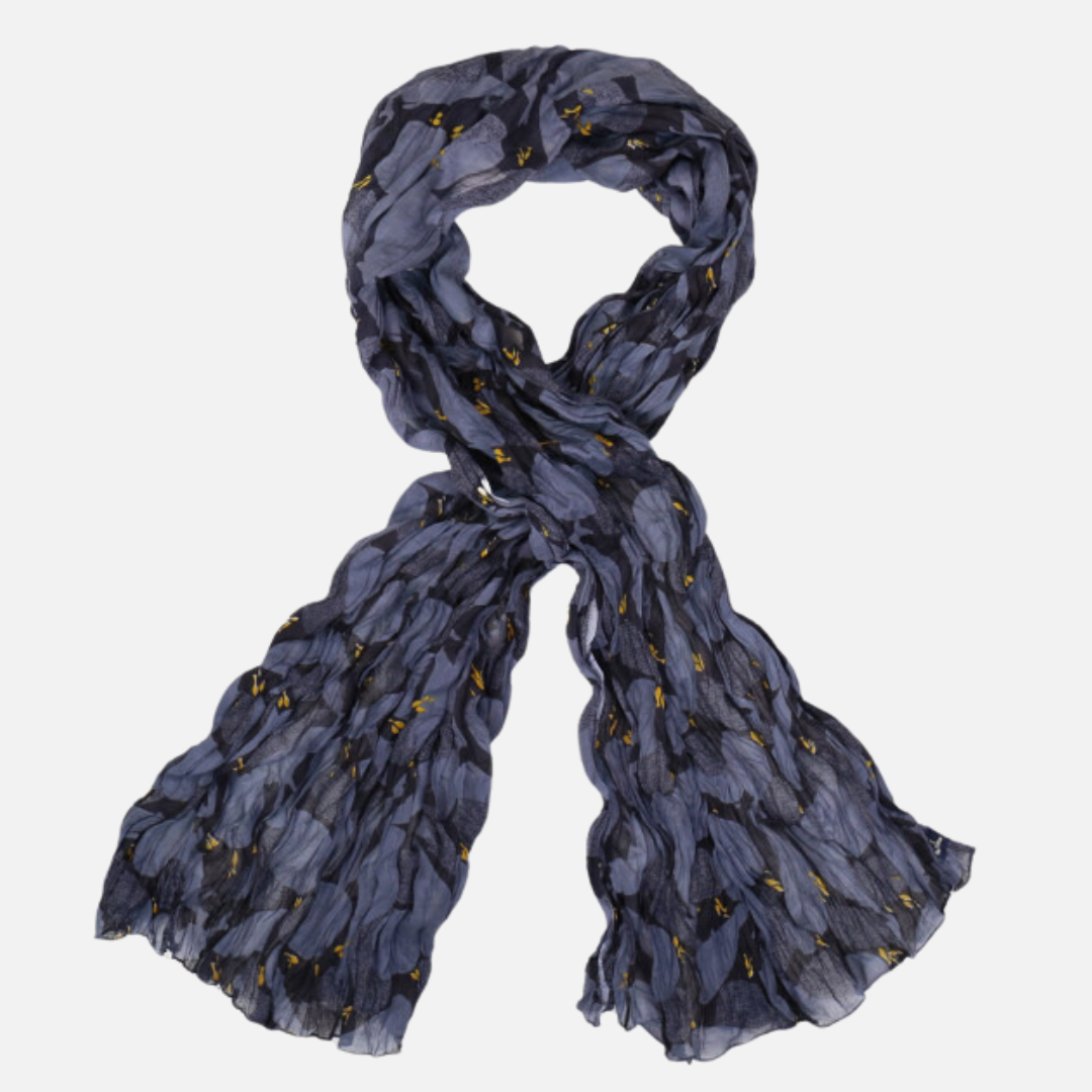 The Foulard-S Mobidick Marine is a light printed cotton scarf/pareo twisted in the Mobidick Navy colourway. It can be worn naturally or pleated. It looks great with the matching coat.