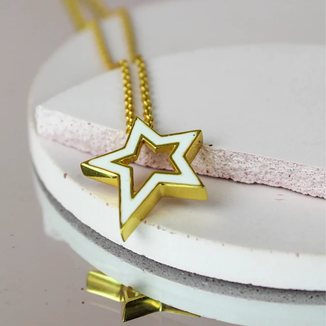 This elegant white star necklace from My Doris boasts a unique asymmetrical design.
