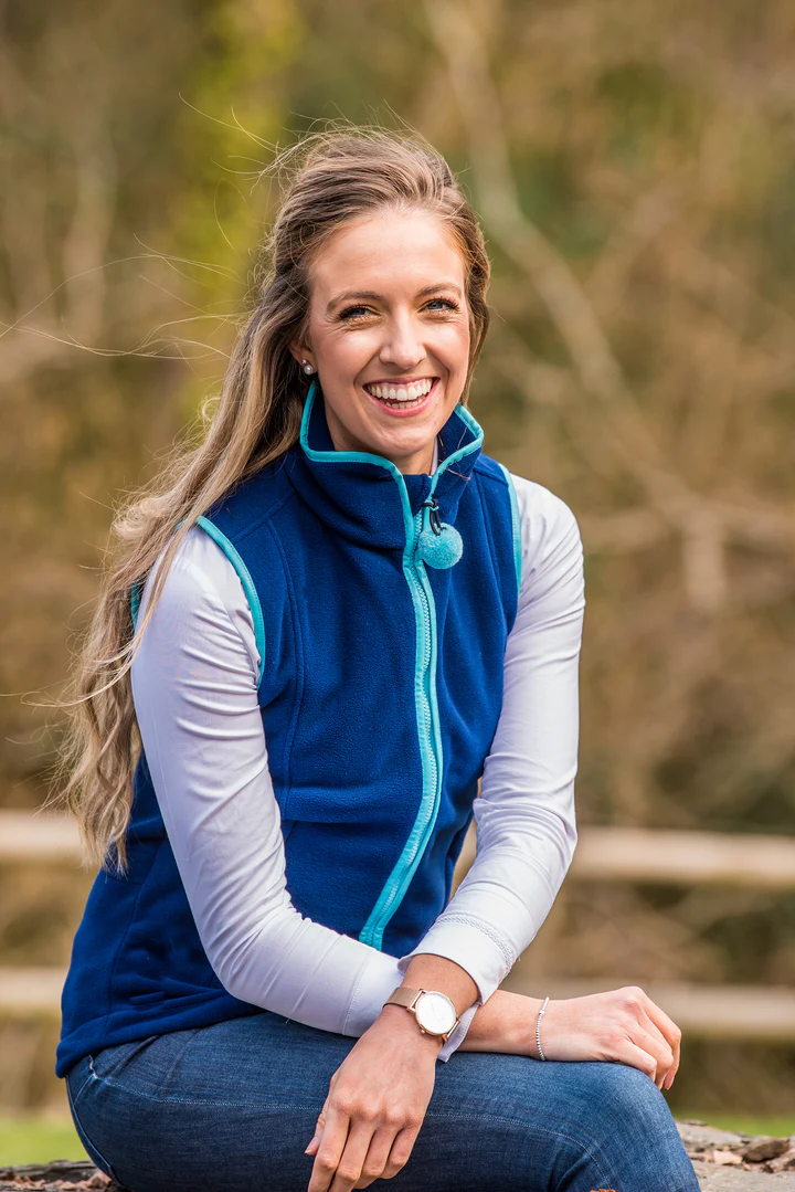 We are delighted to be stocking these amazing, cosy and colourful ladies gilets from Nattily Dressed. This gorgeous navy gilet comes with a matching sky blue zip, trim & wool pom. It's made using Polartec® Classic 200 series performance fabric for ultimate warmth, durability and protection against the elements.