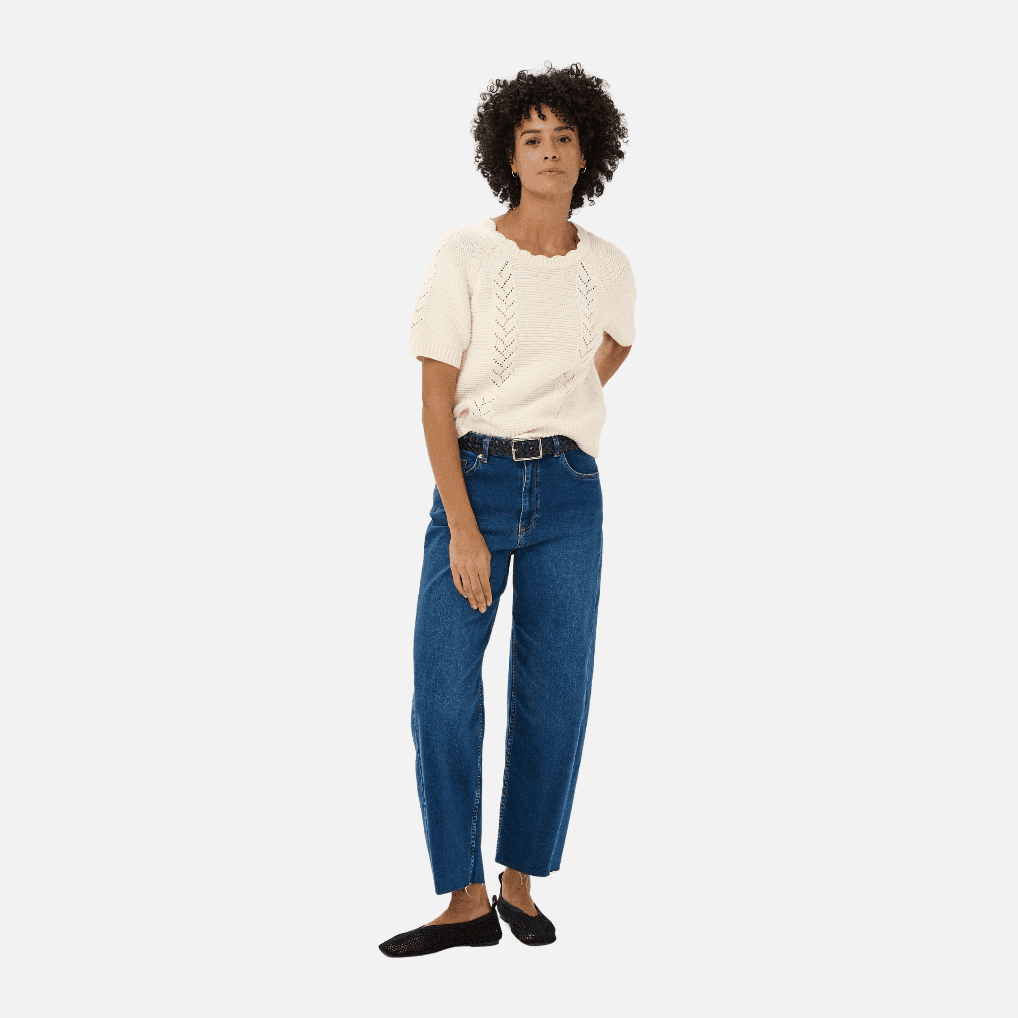 A delicate knit with subtle texture, the Anisette Pullover in Whisper White by Part Two offers an elegant alternative to a classic tee. The scalloped crew neckline and intricate openwork detailing lend softness and refinement, while the straight silhouette keeps the look clean and modern.