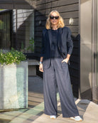 Crafted from true navy linen, the Ellie Waistcoat by Chalk UK offers a clean, modern silhouette with timeless appeal. Thoughtfully designed with simple lines and refined detailing, it forms part of a contemporary three-piece set for effortless, coordinated dressing.