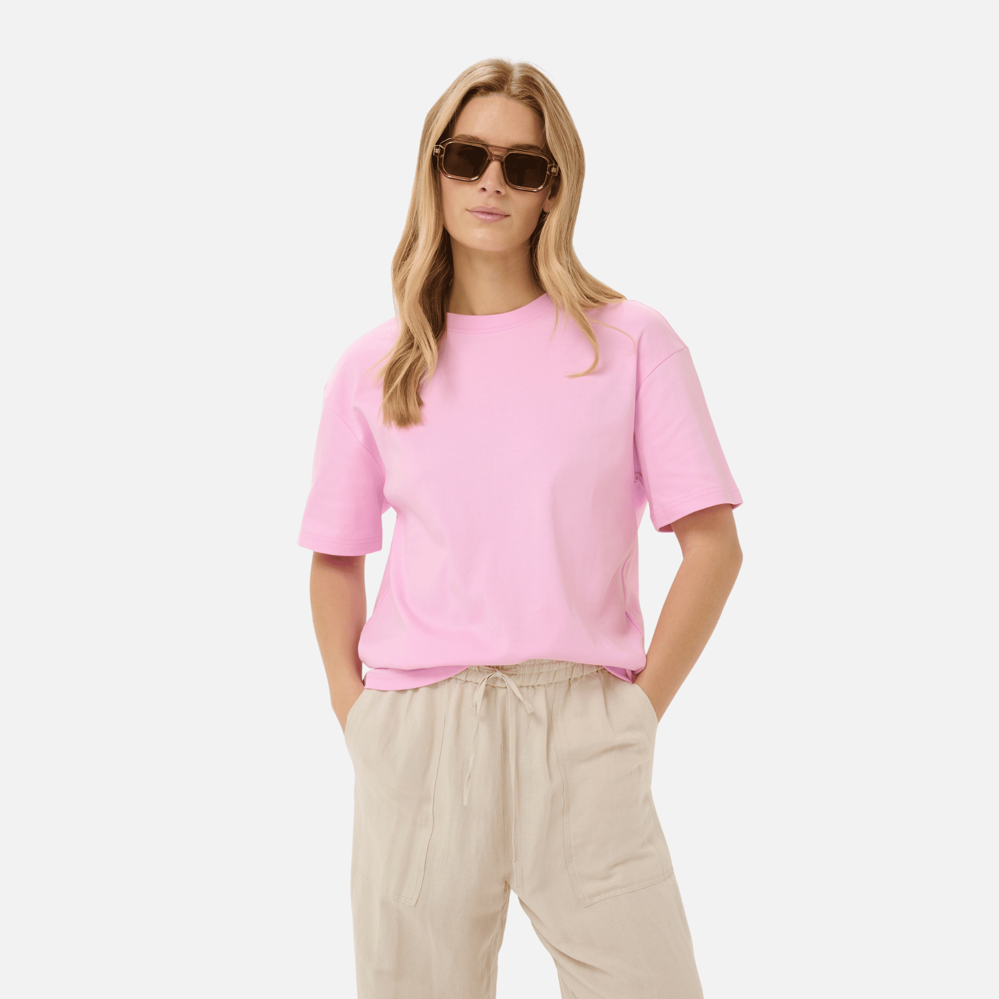 Relaxed yet refined, the Jamina T-Shirt in Cameo Pink by Part Two is an easy wardrobe staple with a contemporary feel. Cut in an oversized silhouette and crafted from soft organic cotton, it offers breathable comfort with effortless drape — perfect for modern, everyday styling.