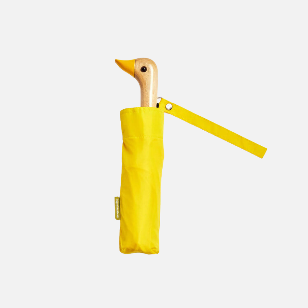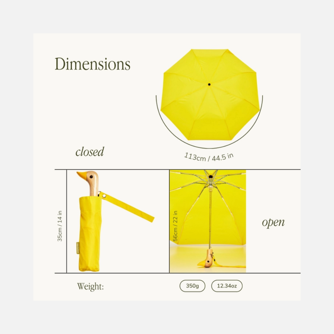 Introducing the Eco-Friendly Compact Duck Umbrella in bold yellow by Original Duckhead! Perfect for everyday use, this umbrella is designed with durability in mind to accompany you on all your adventures.