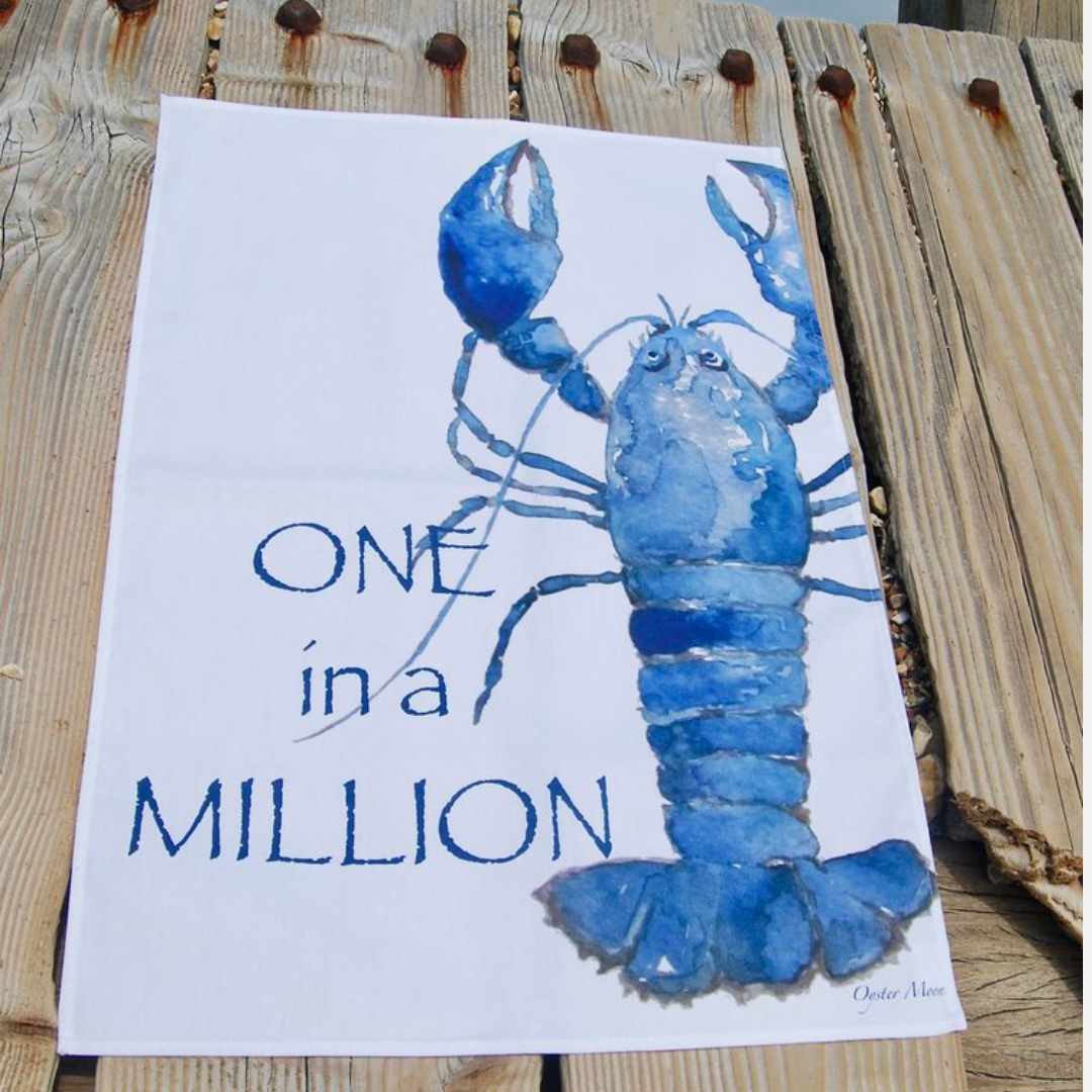 A lovely crisp, white tea towel featuring a vibrant and beautiful blue lobster from Oyster Moon's Ocean Collection of watercolours.