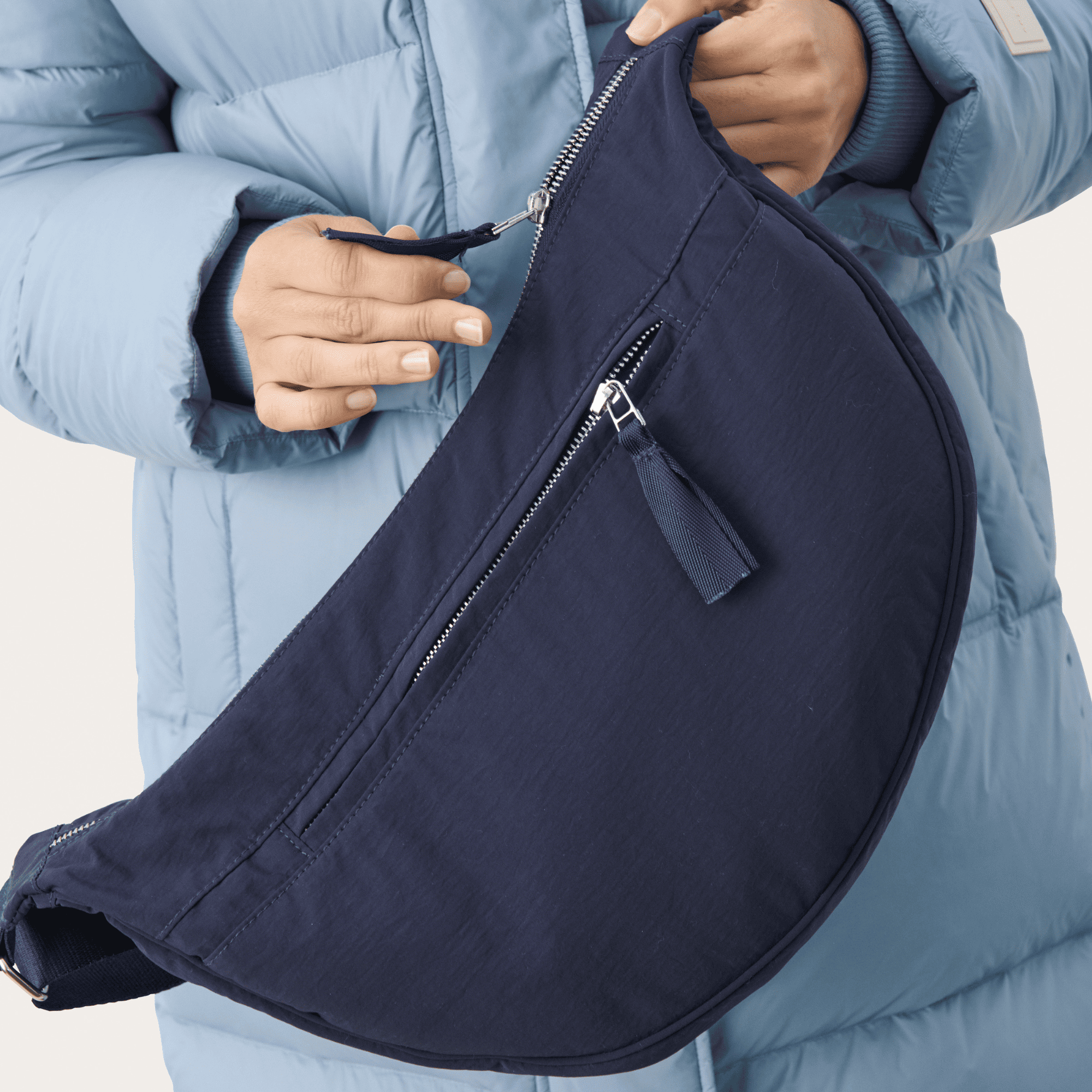 Practical and effortlessly stylish, the Luane Belt Bag by Part Two is a versatile accessory designed for everyday ease. Crafted from durable fabric in a classic dark navy colour, it features a secure zip closure and an adjustable strap for the perfect fit. Whether worn around the waist or across the body, it keeps your essentials close and your hands free. This is the ideal bag for errands, travel, or city adventures.