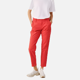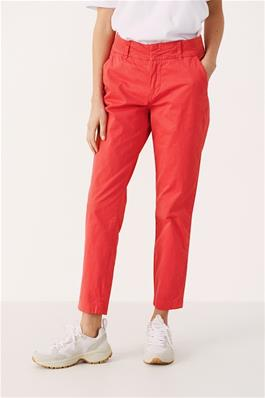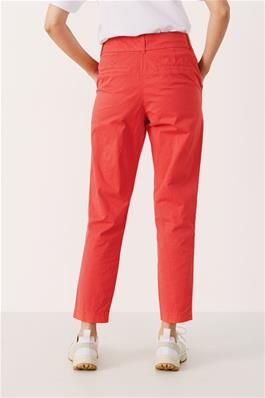 A timeless wardrobe essential, the Soffy's 7/8 Cropped Chinos in Cayenne by Part Two offer the perfect balance of style and comfort. Crafted from a soft cotton blend with a touch of stretch, these slim-fit chinos are designed for effortless everyday wear. Featuring side pockets, belt loops, and a flattering cropped length, they transition seamlessly from casual to smart styling.