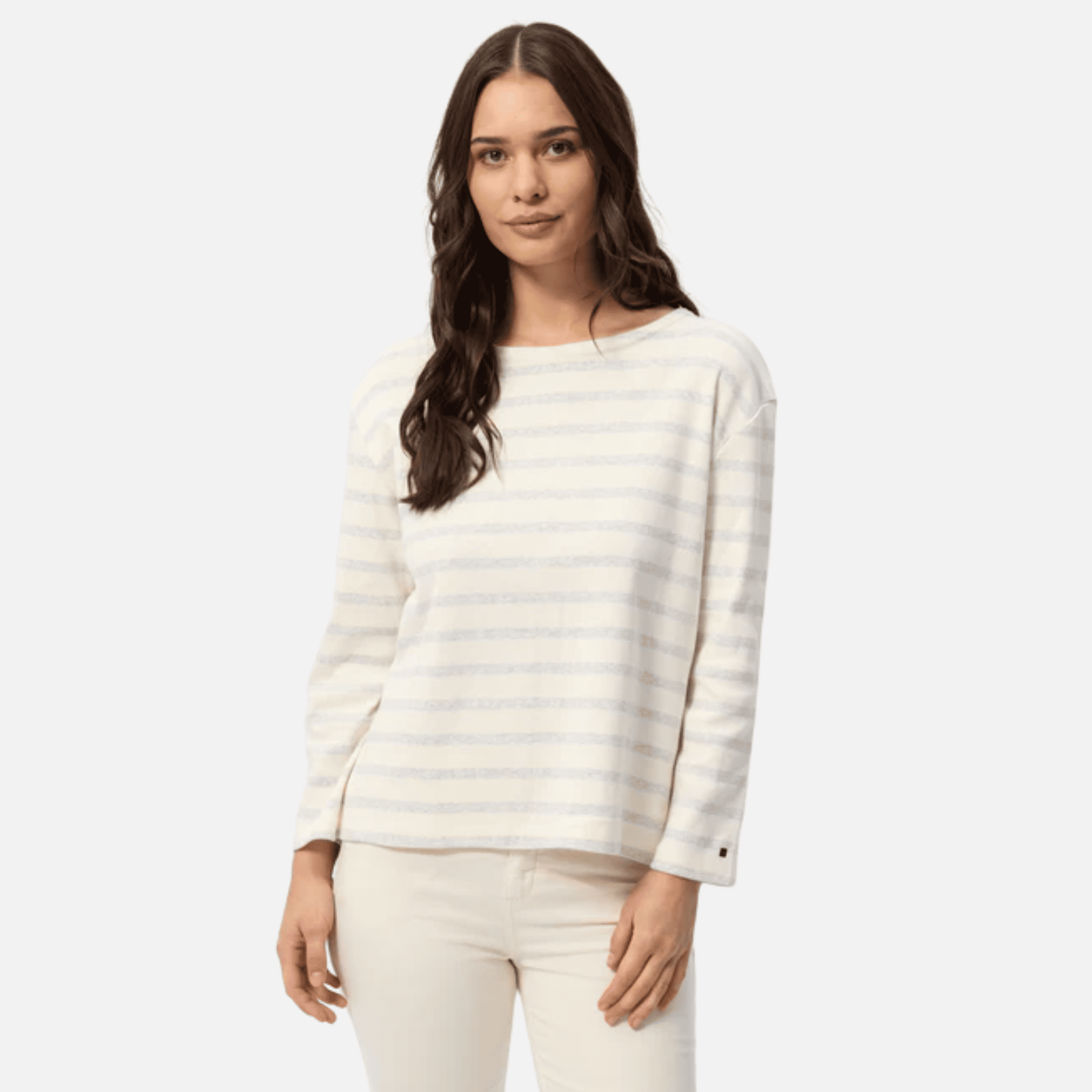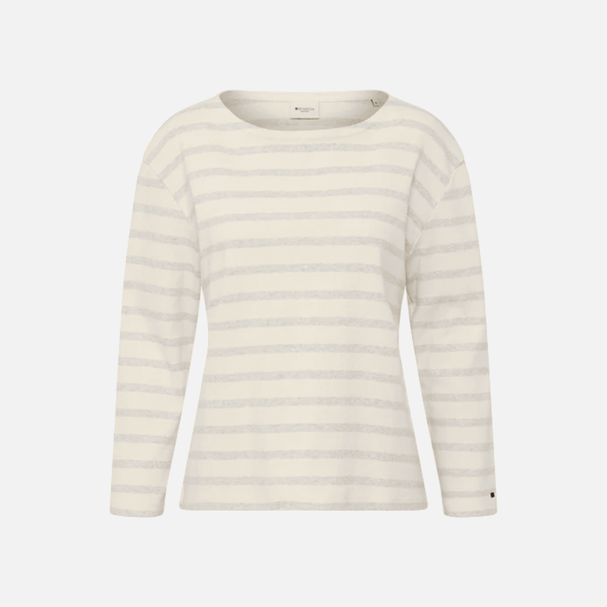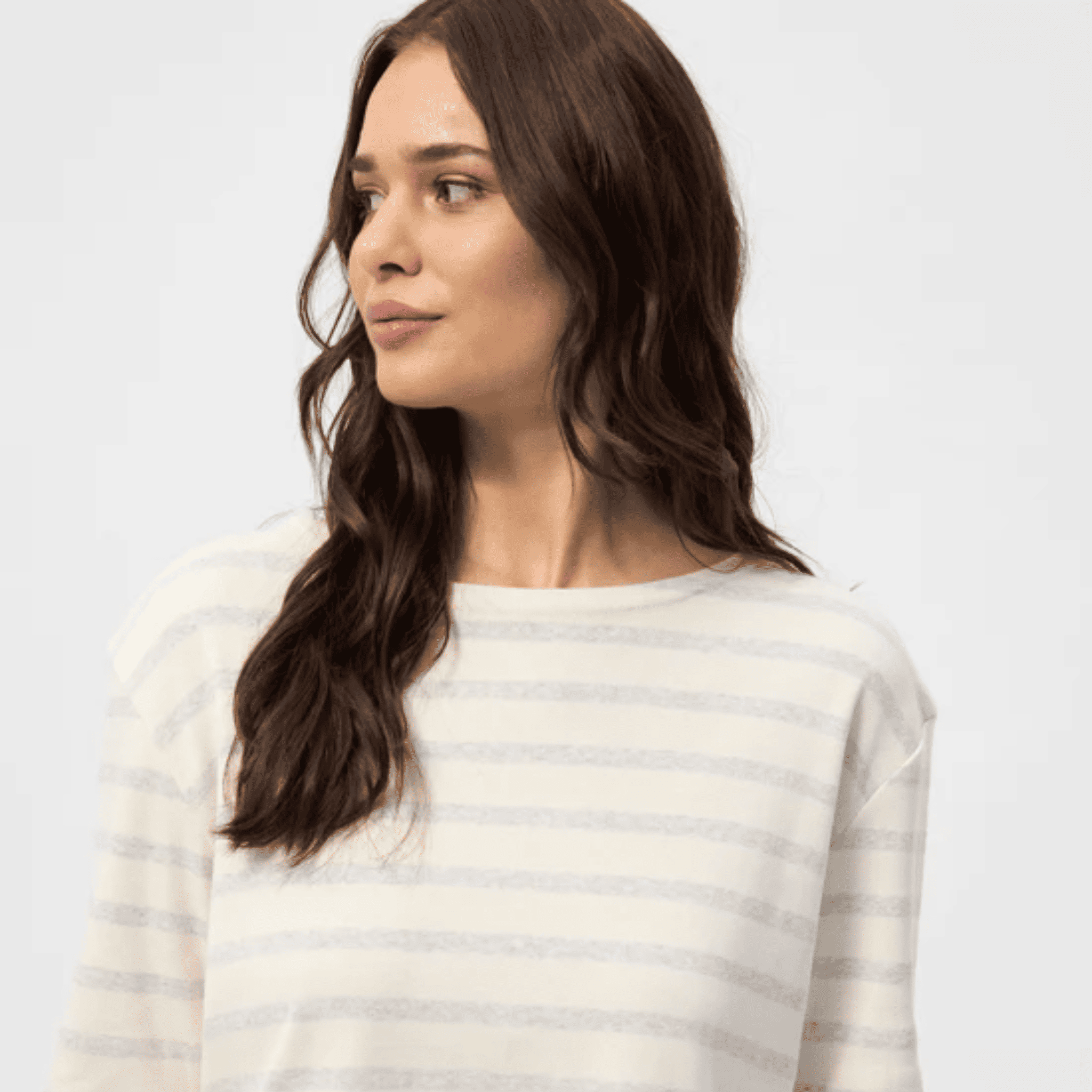 Designed in Denmark and made in Europe, this classic striped jersey top features a soft grey melange stripe for a refined, minimal look that pairs beautifully with everything from jeans to tailored trousers.